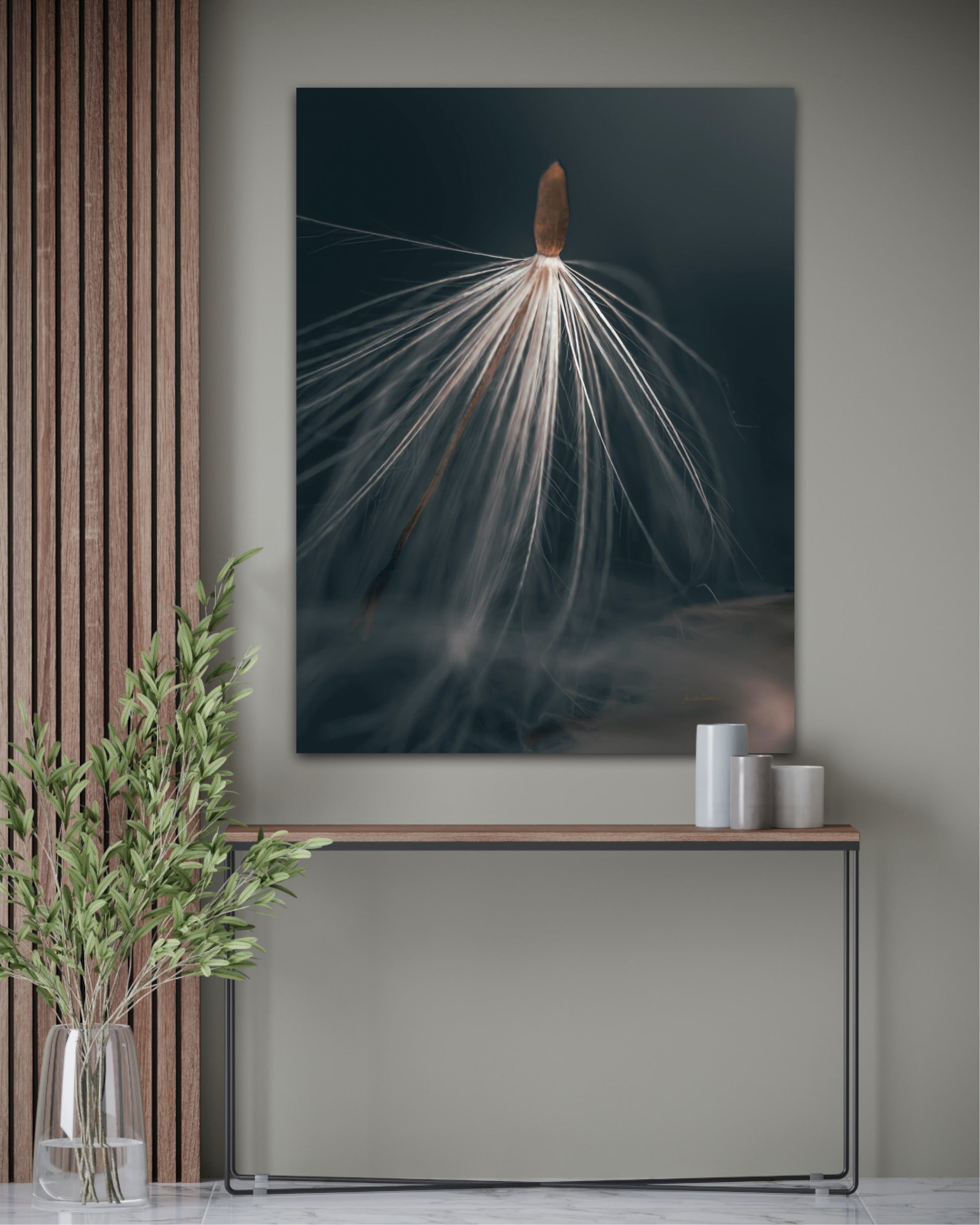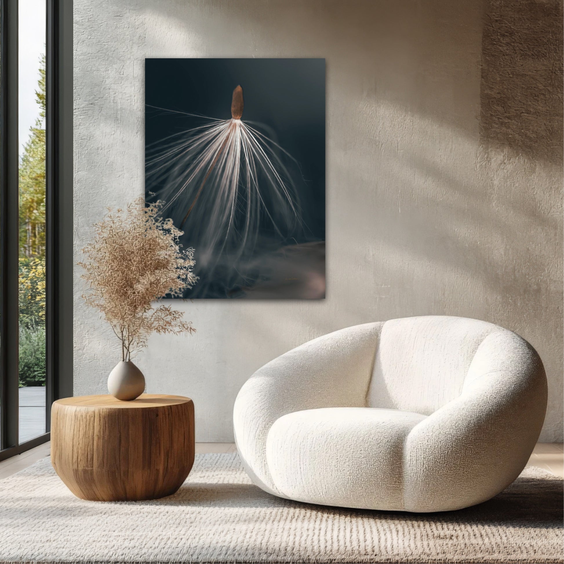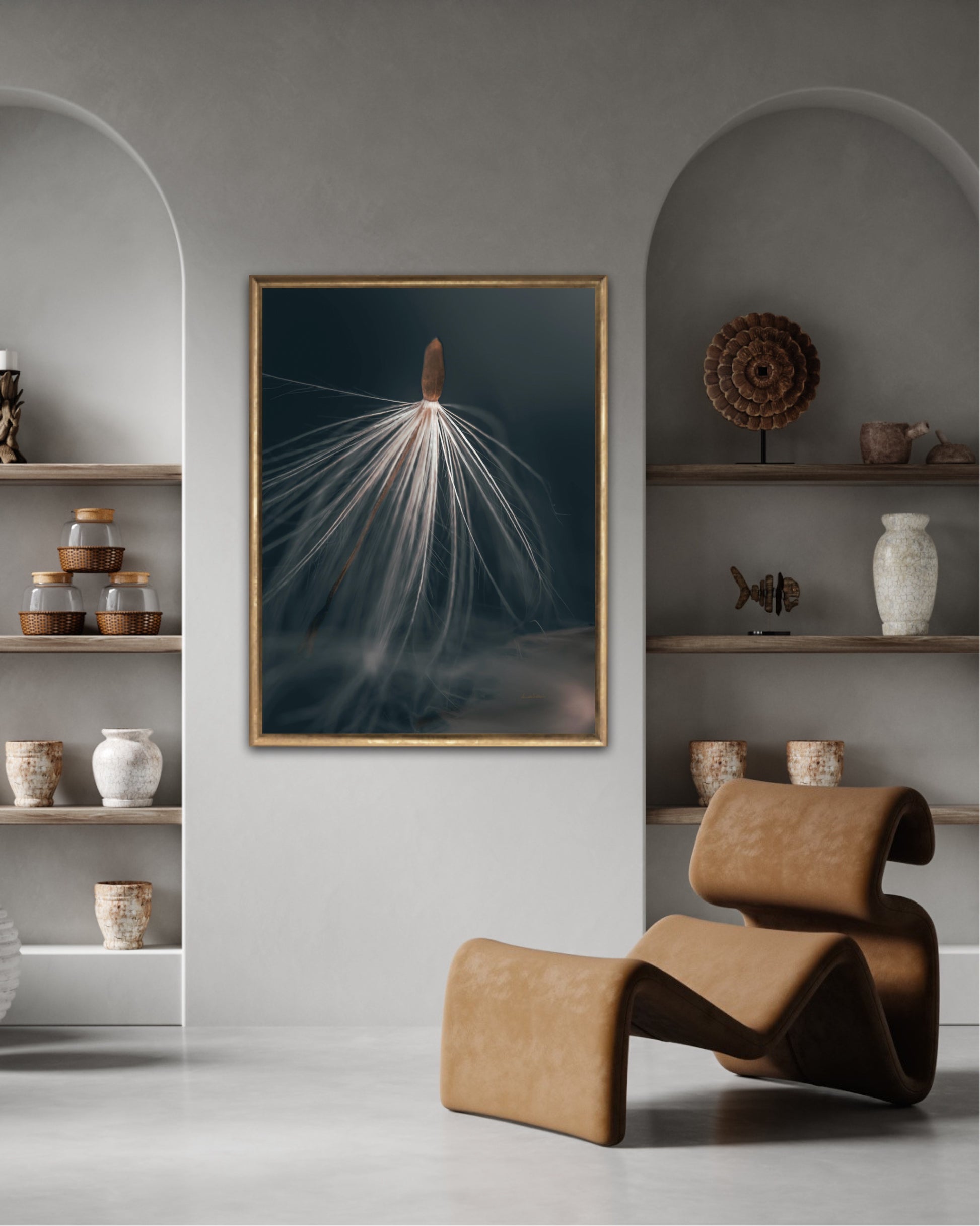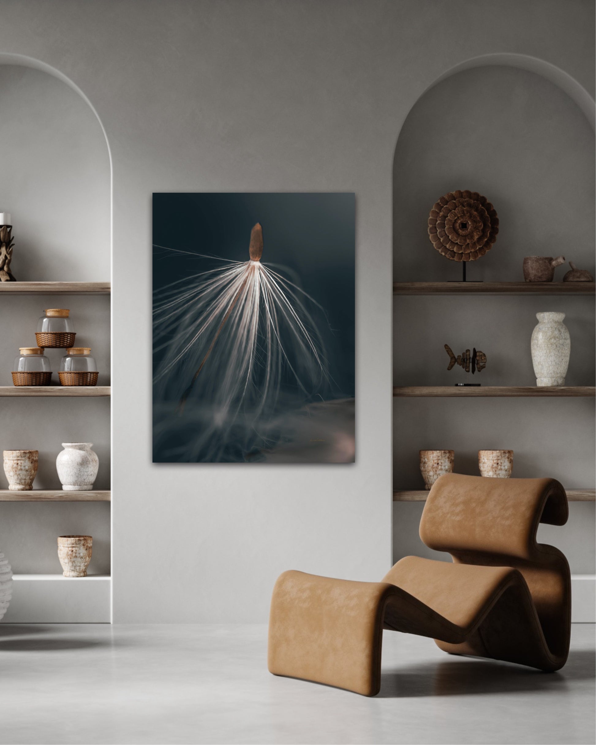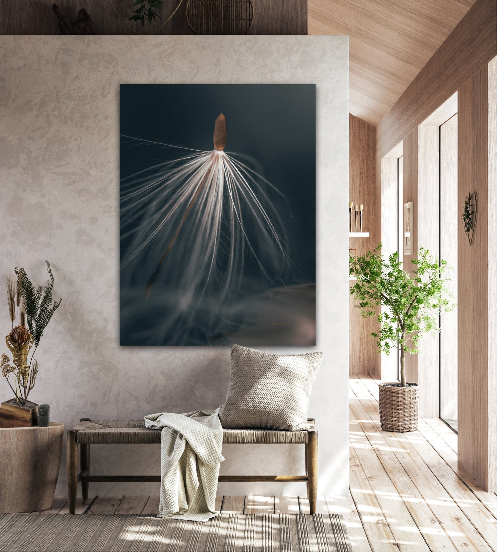 Beautiful photographic wall art of a dandelion seed up close. Feel the magic of nature with this picture. The picture becomes an eye-catcher on the wall and comes in pleasant tones that match several wall colours.
