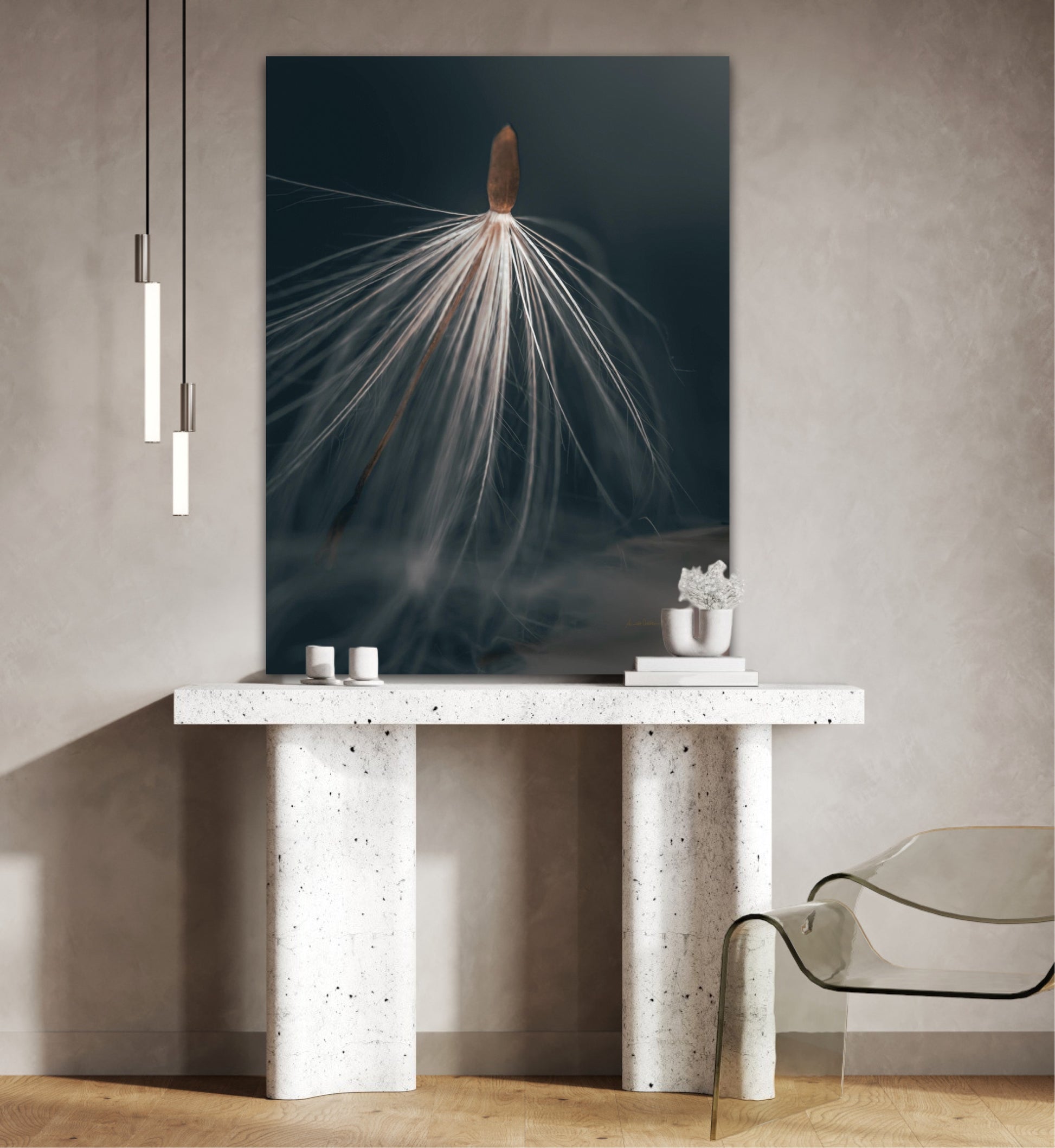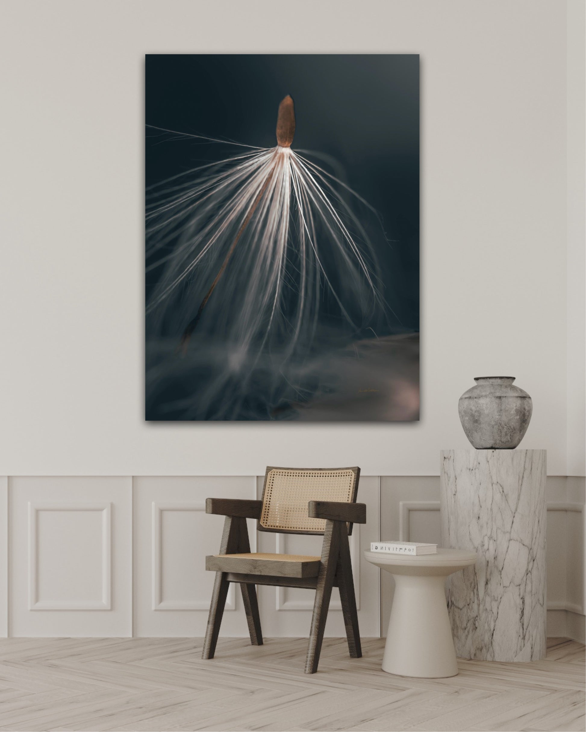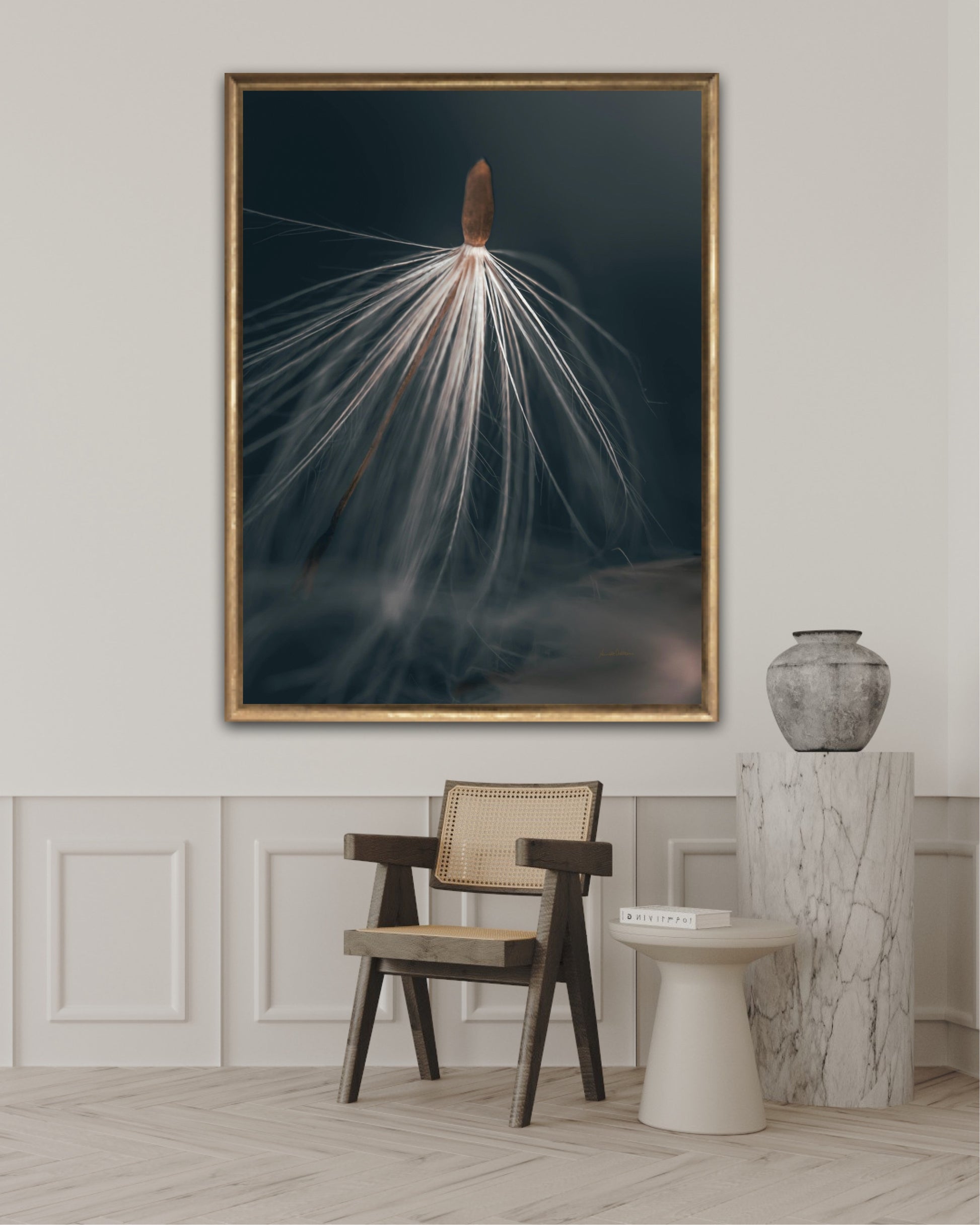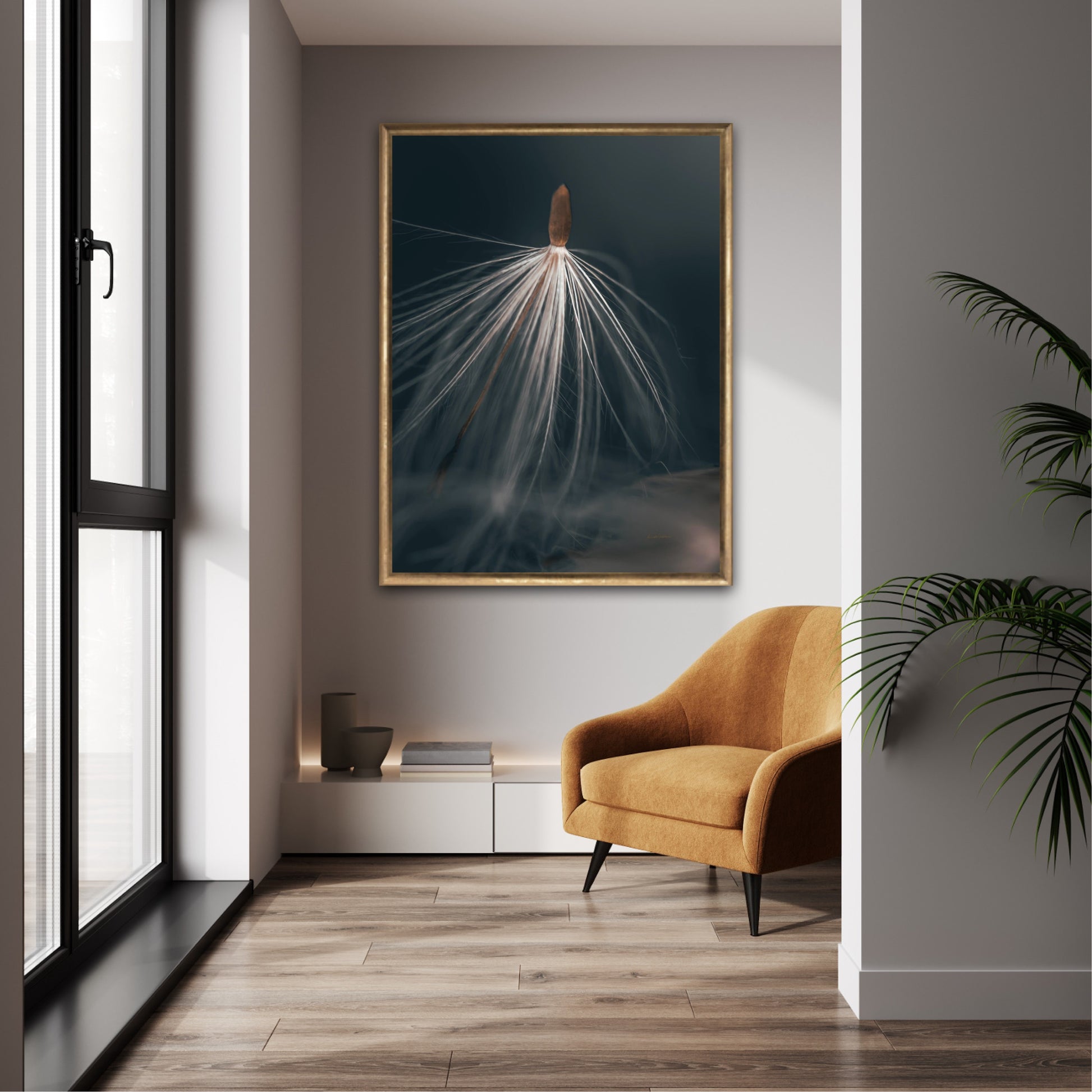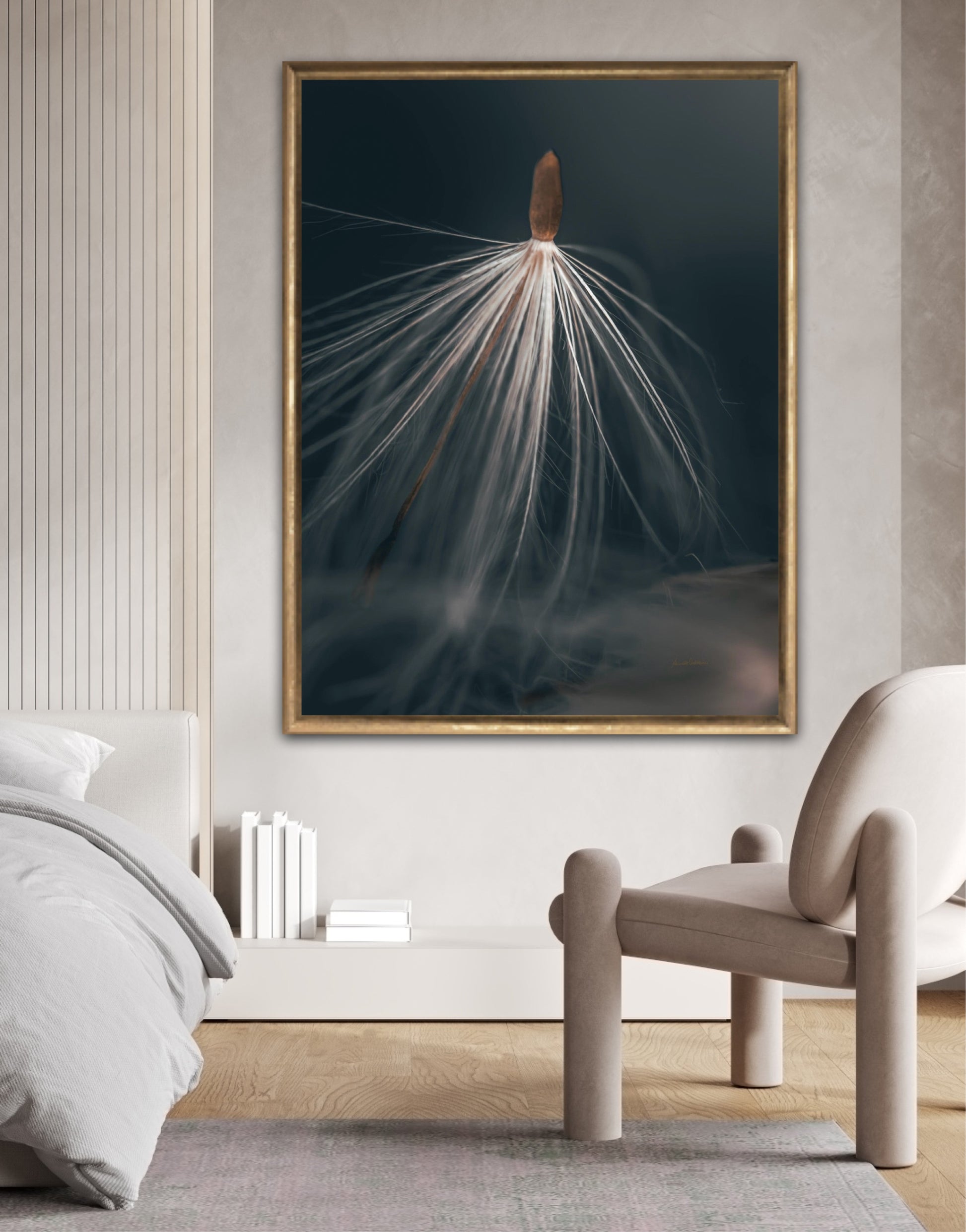 Beautiful photographic wall art of a dandelion seed up close. Feel the magic of nature with this picture. The picture becomes an eye-catcher on the wall and comes in pleasant tones that match several wall colours.
