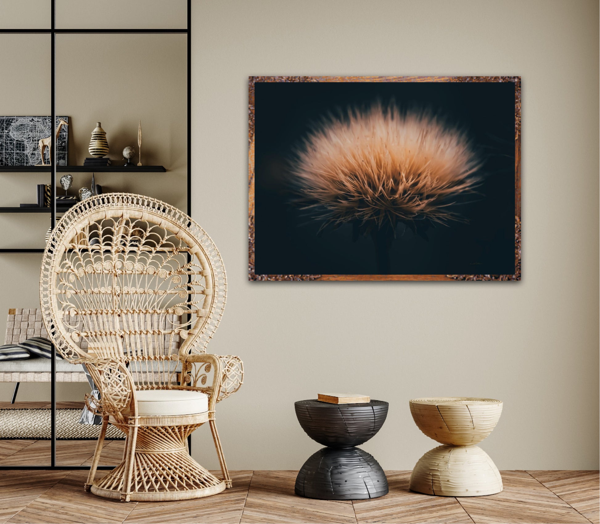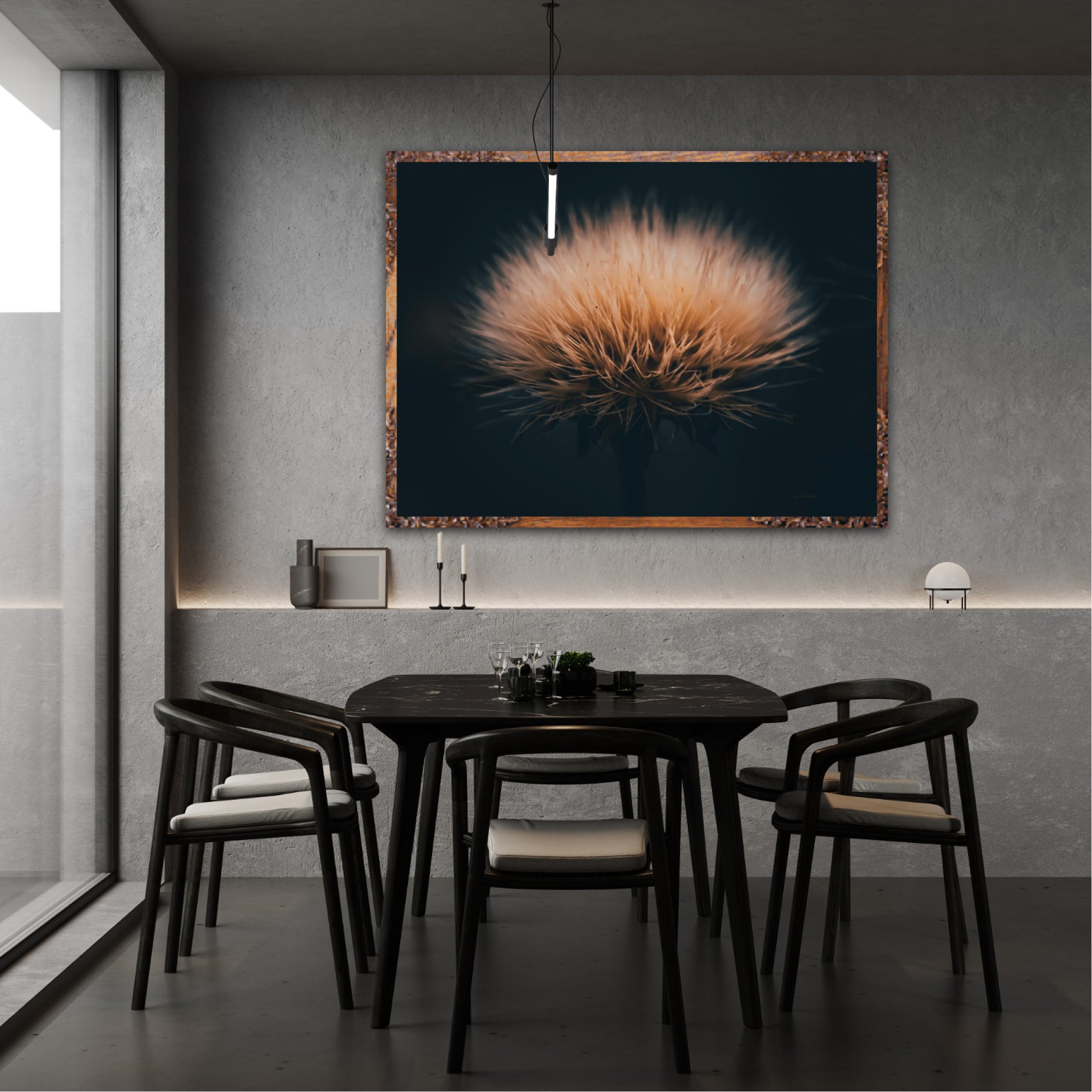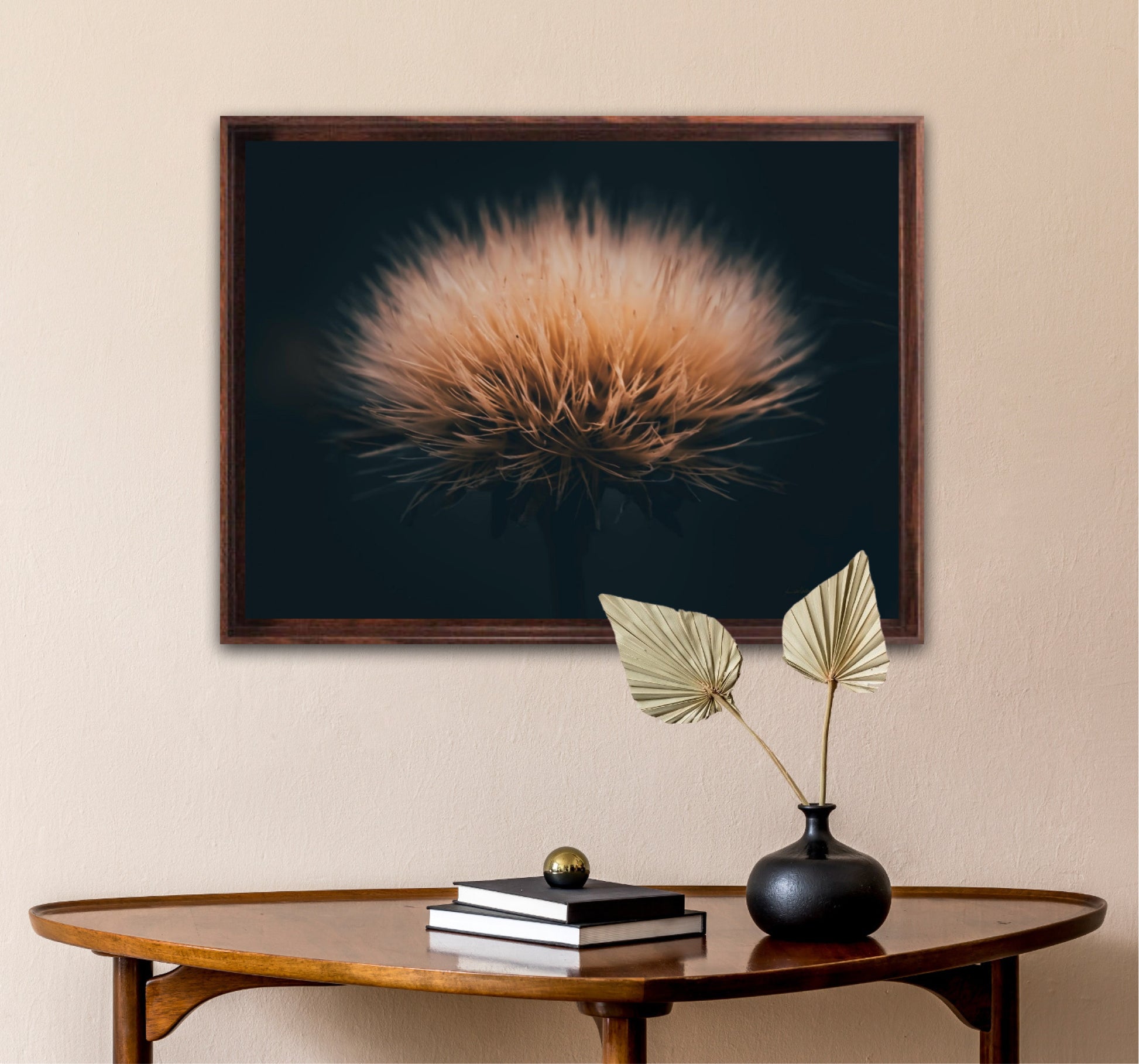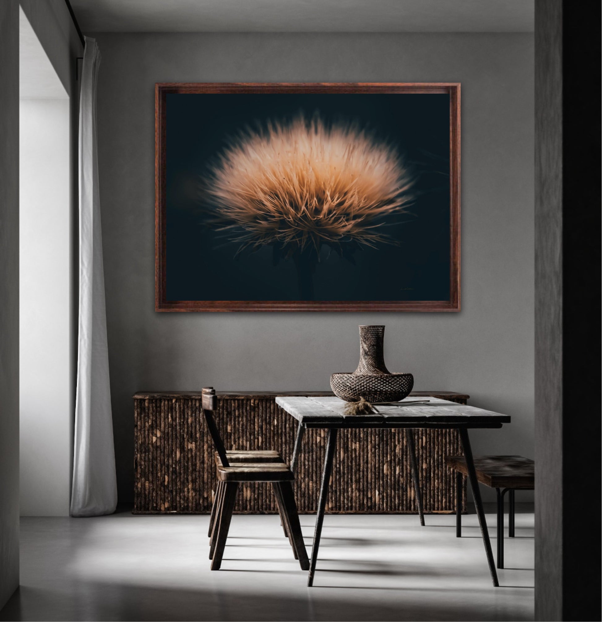 Can you feel how soft it is? Get a unique wall art piece with this beautiful motif, a dandelion seed with lots of fluff. The picture is in earth tones and fits well in modern homes and in the cottage. Get the good feeling and impress your friends and family with this work of art on your wall.