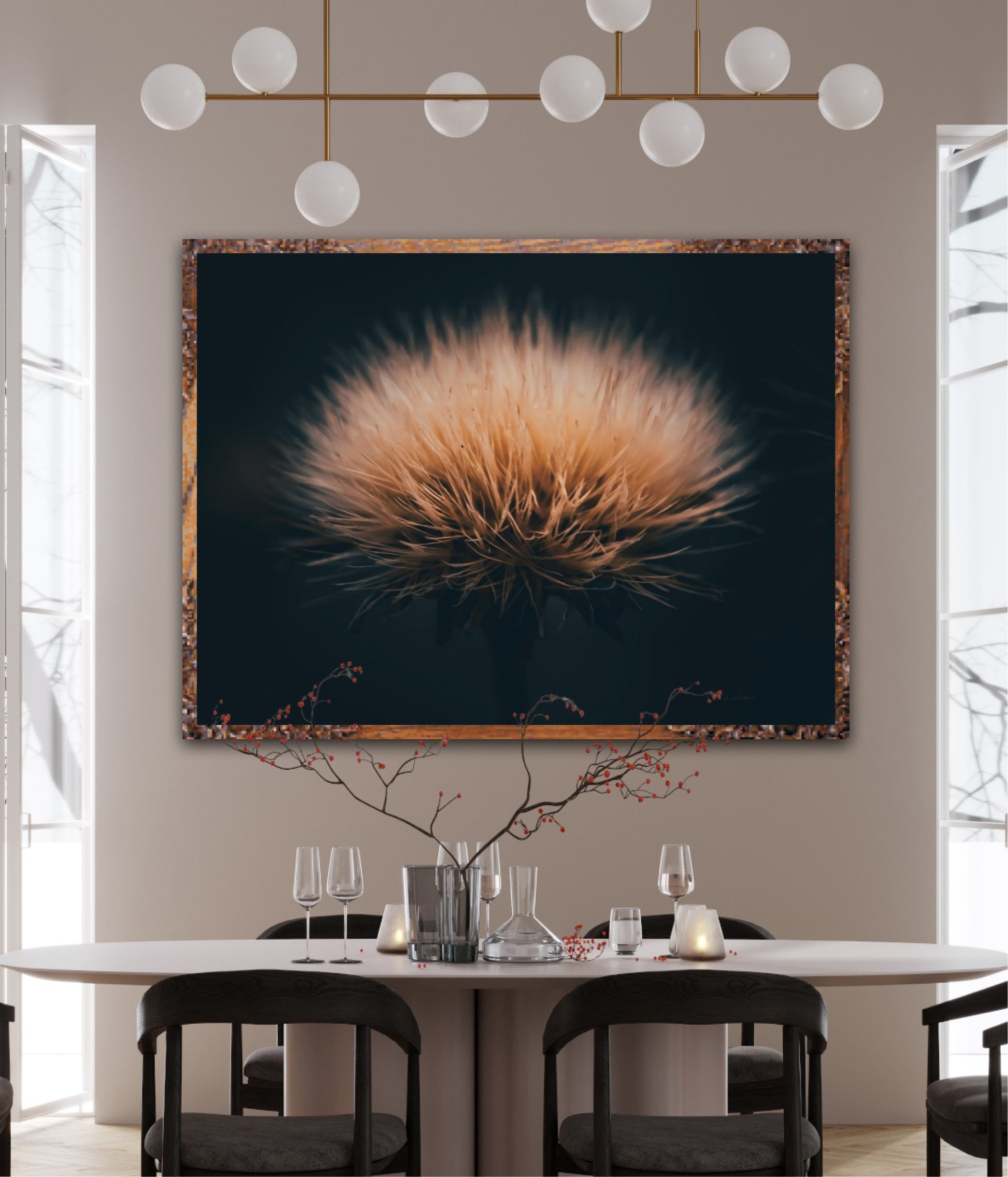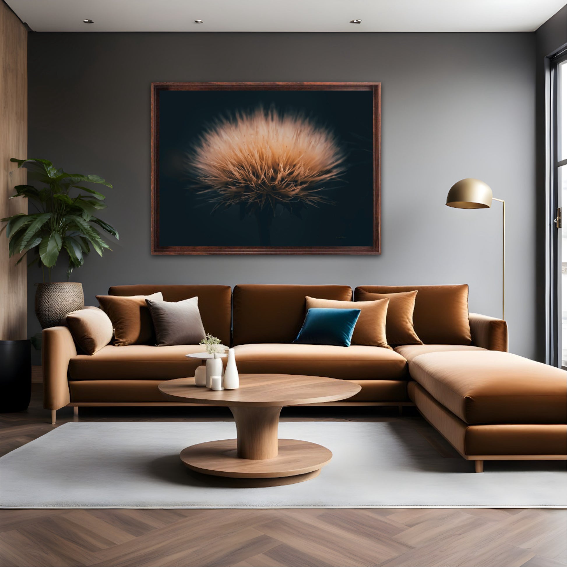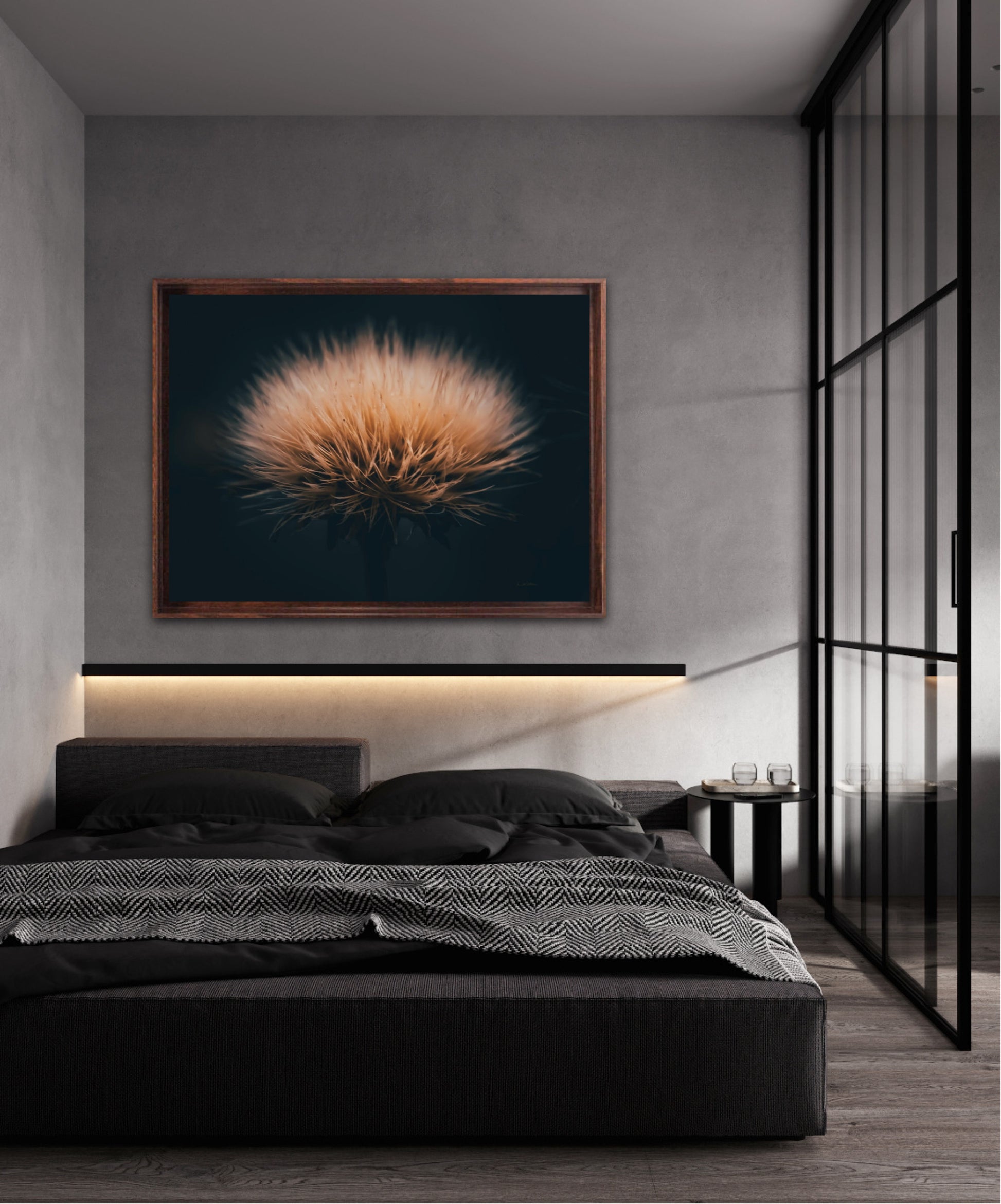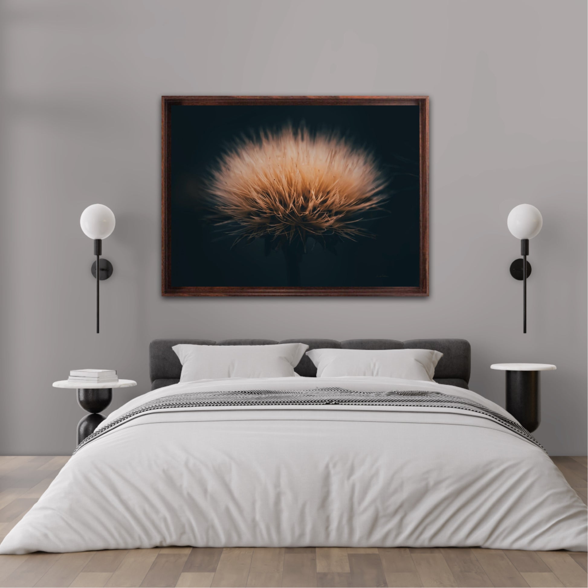 Can you feel how soft it is? Get a unique wall art piece with this beautiful motif, a dandelion seed with lots of fluff. The picture is in earth tones and fits well in modern homes and in the cottage. Get the good feeling and impress your friends and family with this work of art on your wall.
