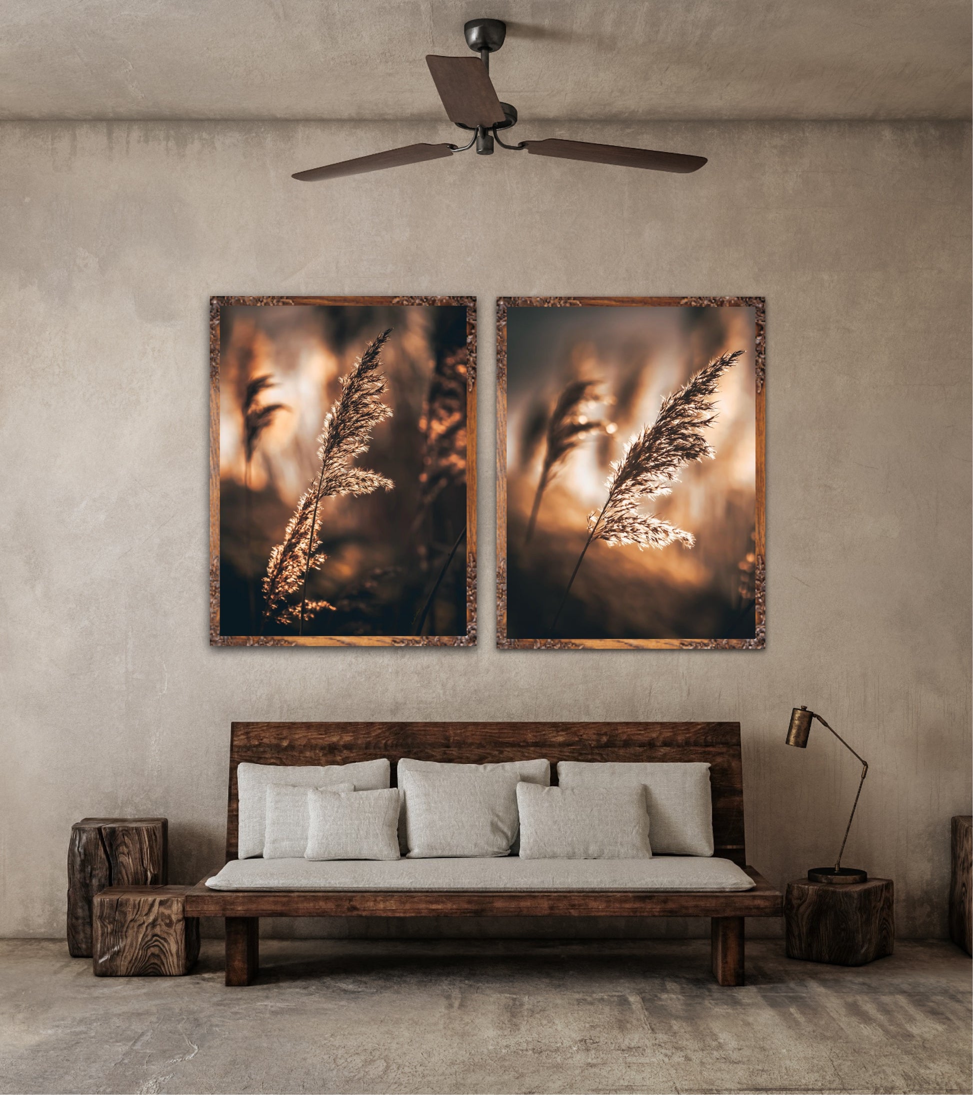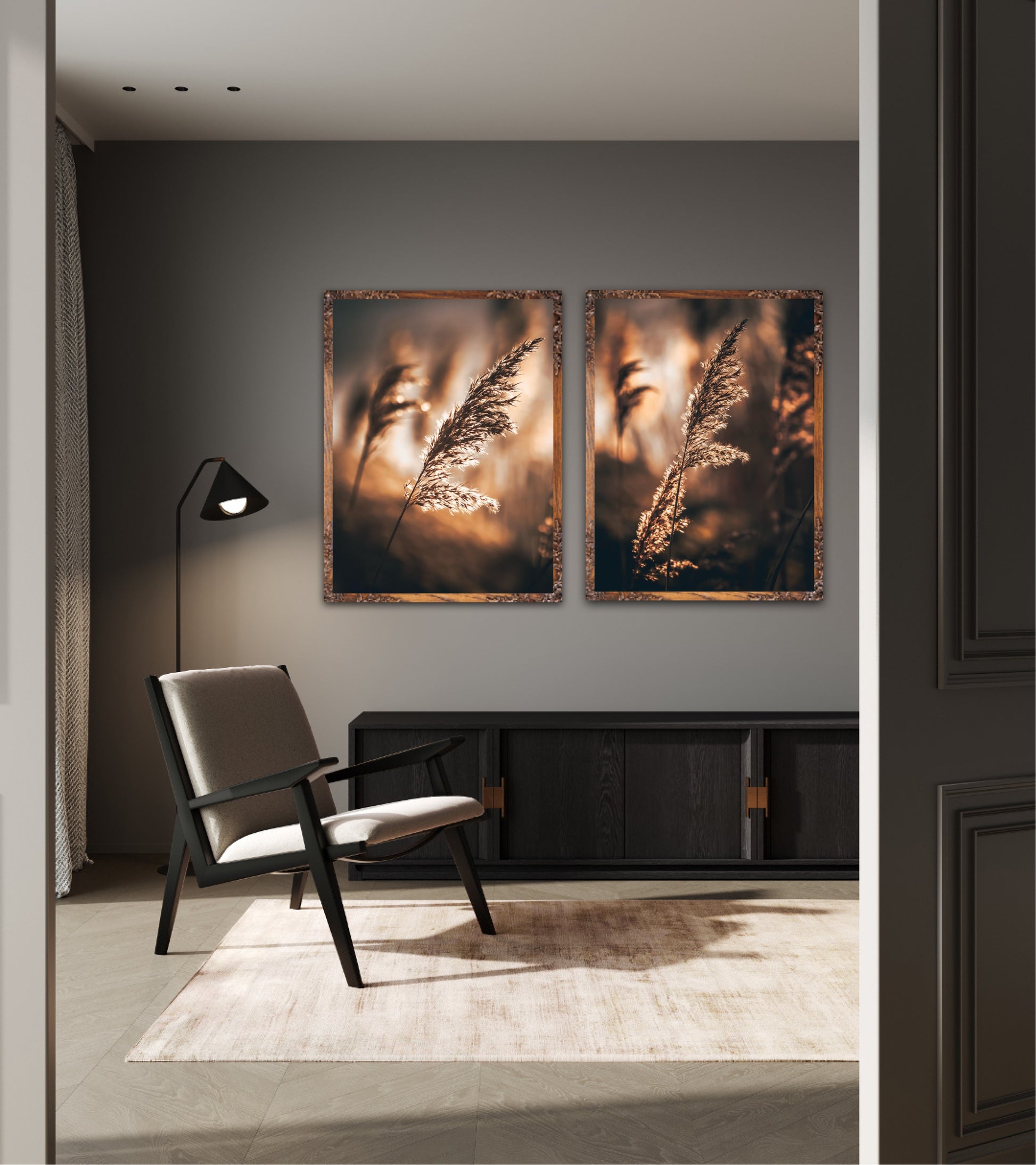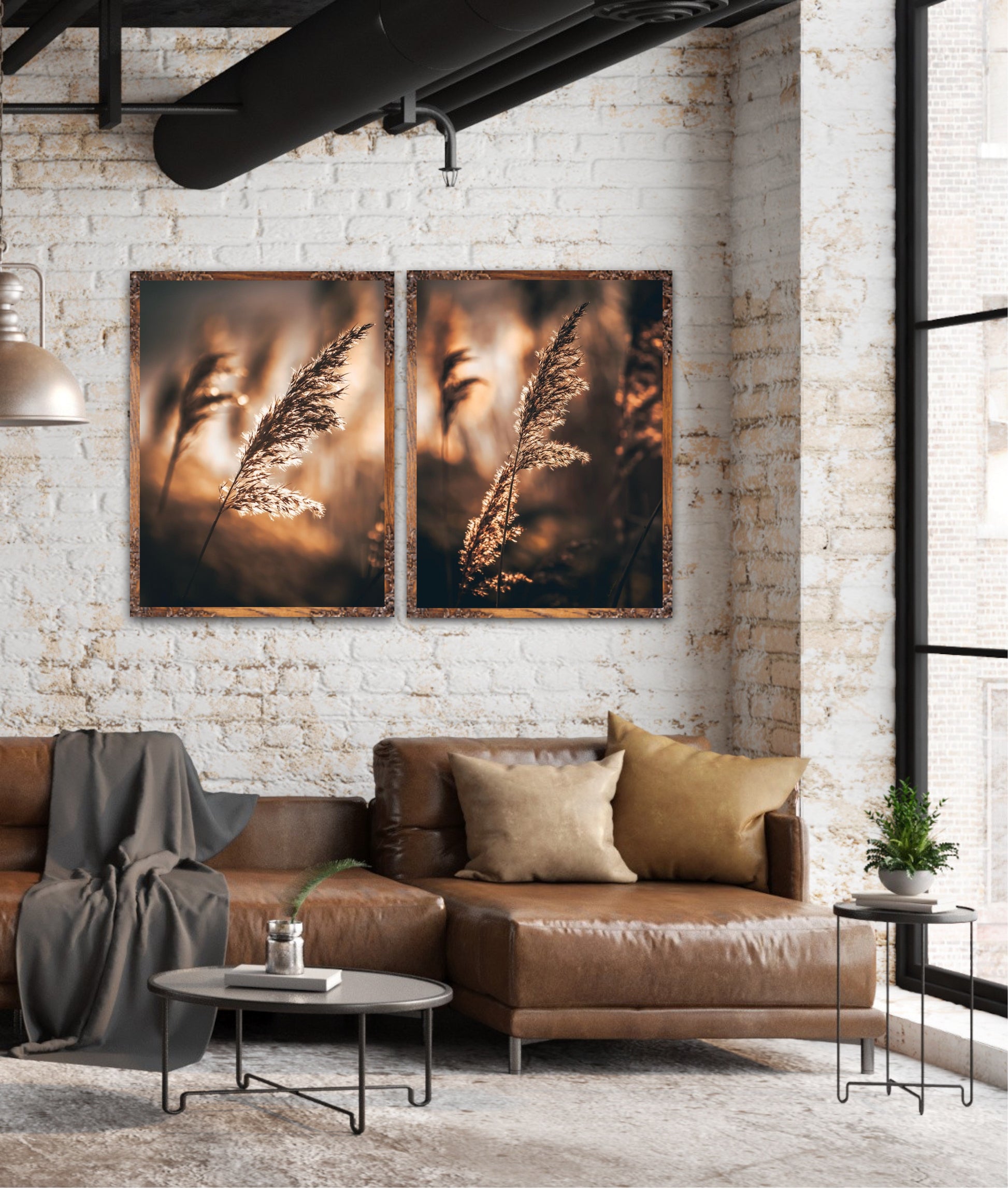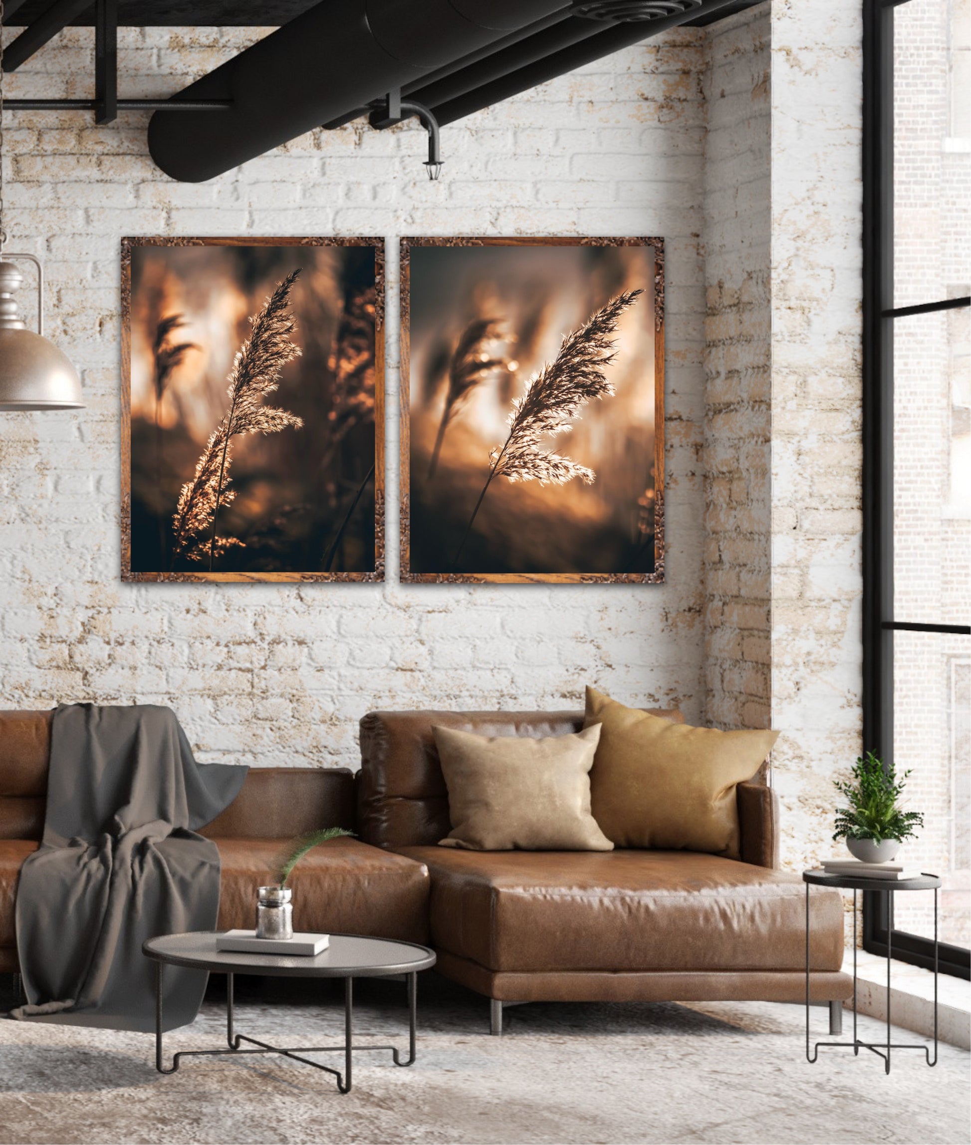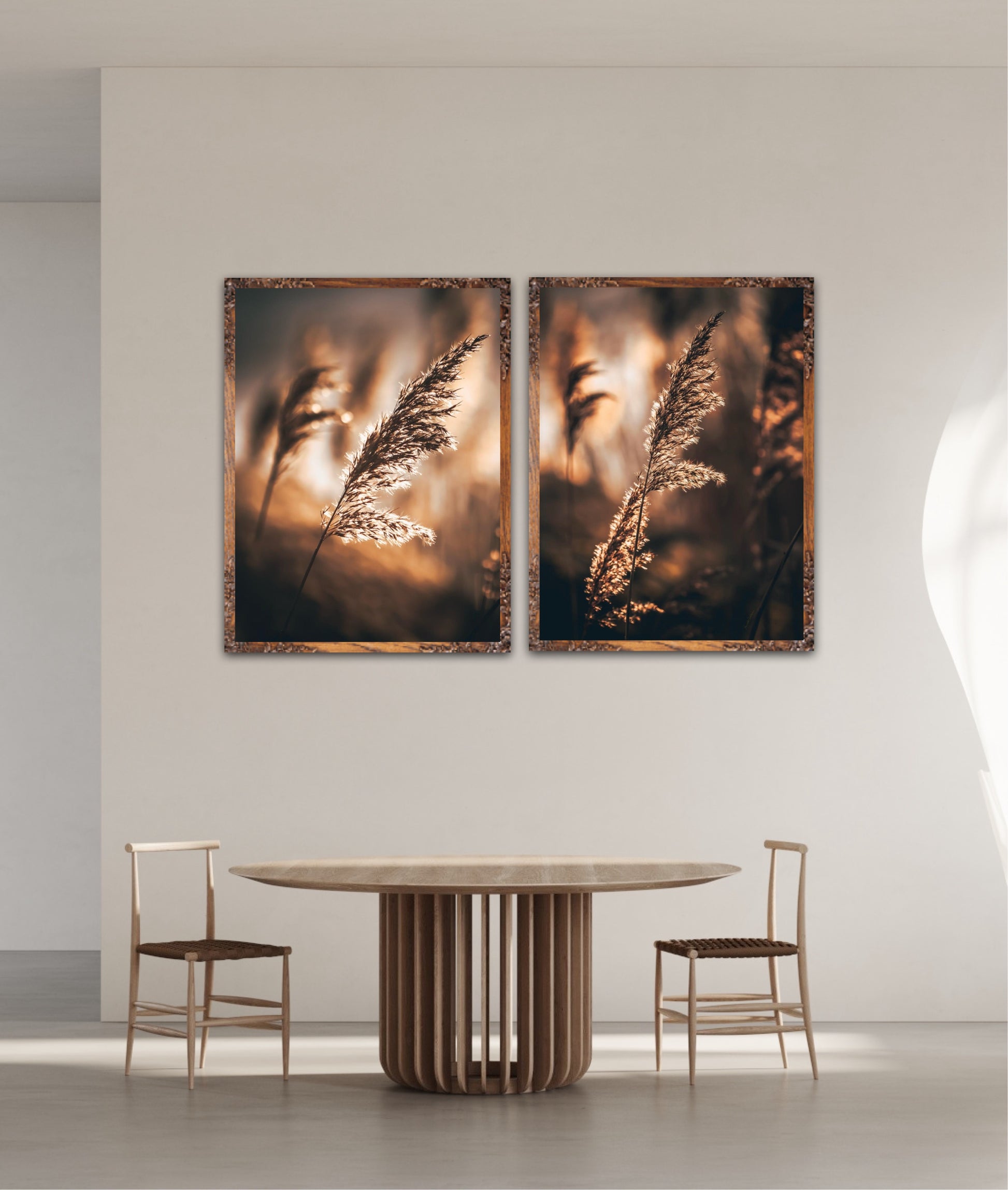 Beautiful photographic wall art of a straw at the waterfront during sunset. Magical, wonderful colours and light will bring great atmosphere to your home.
