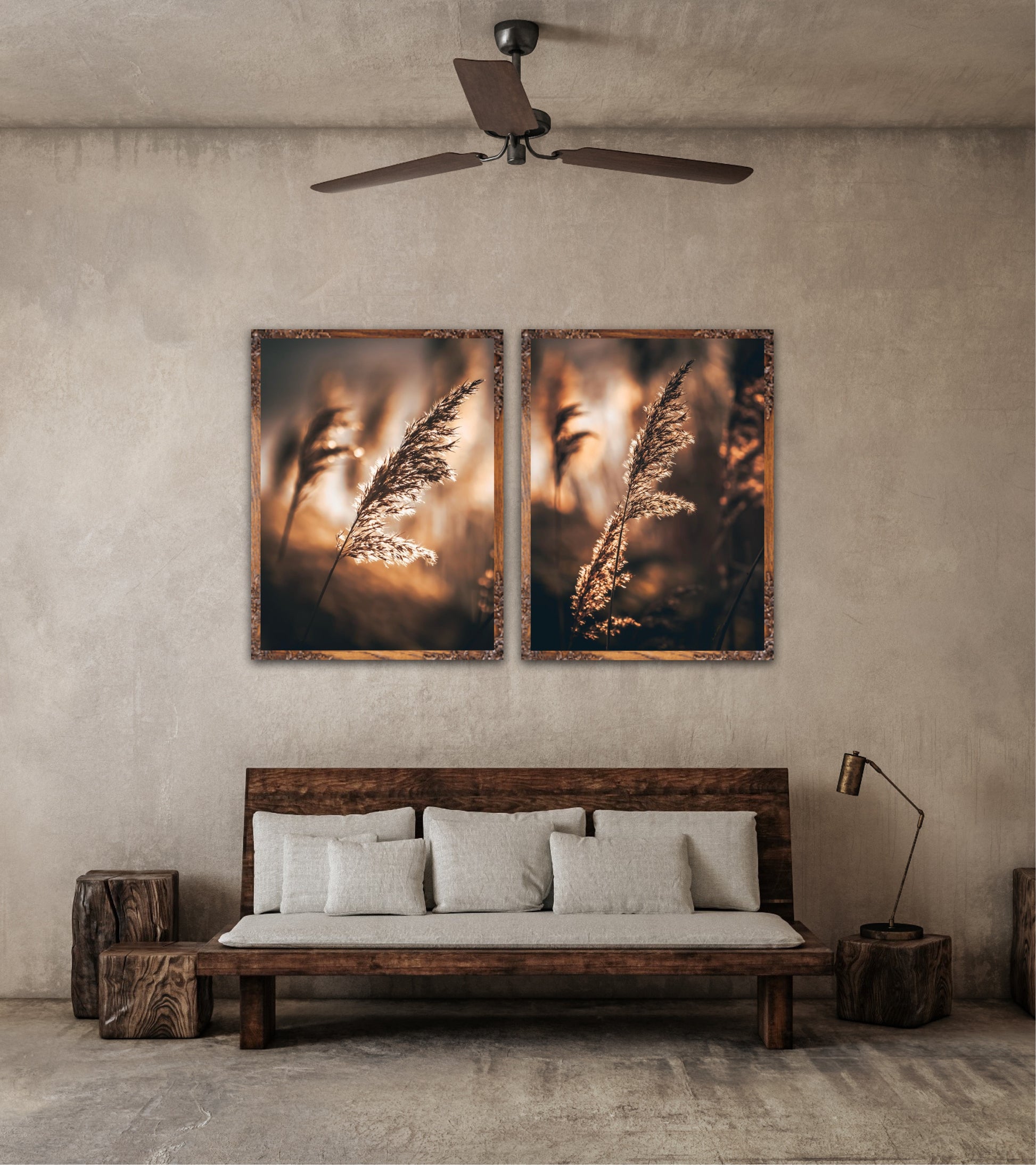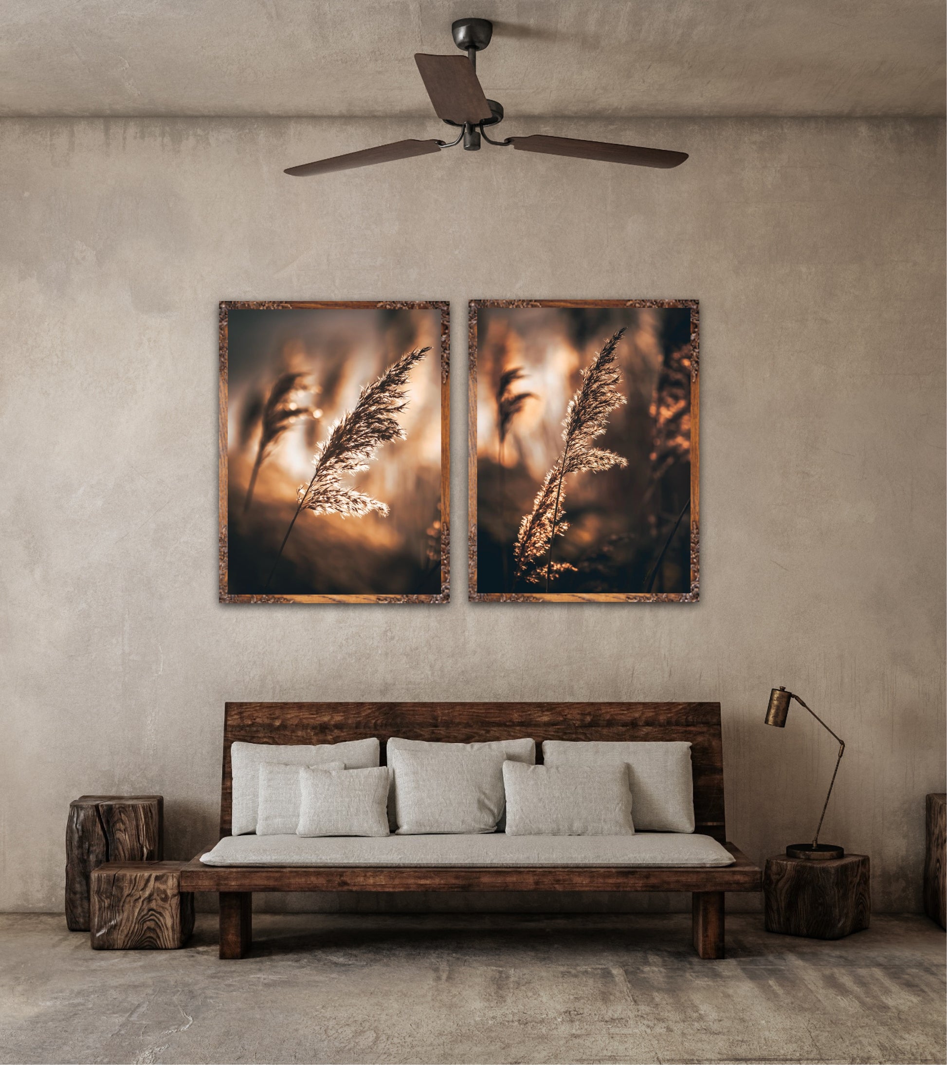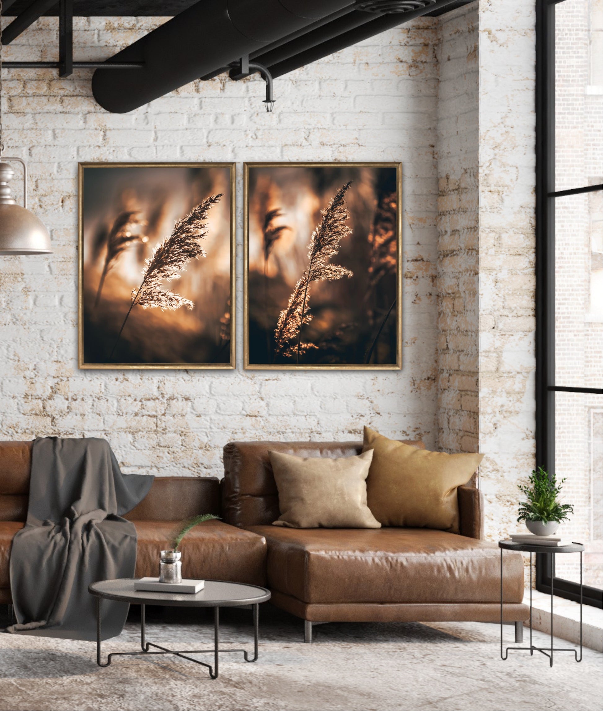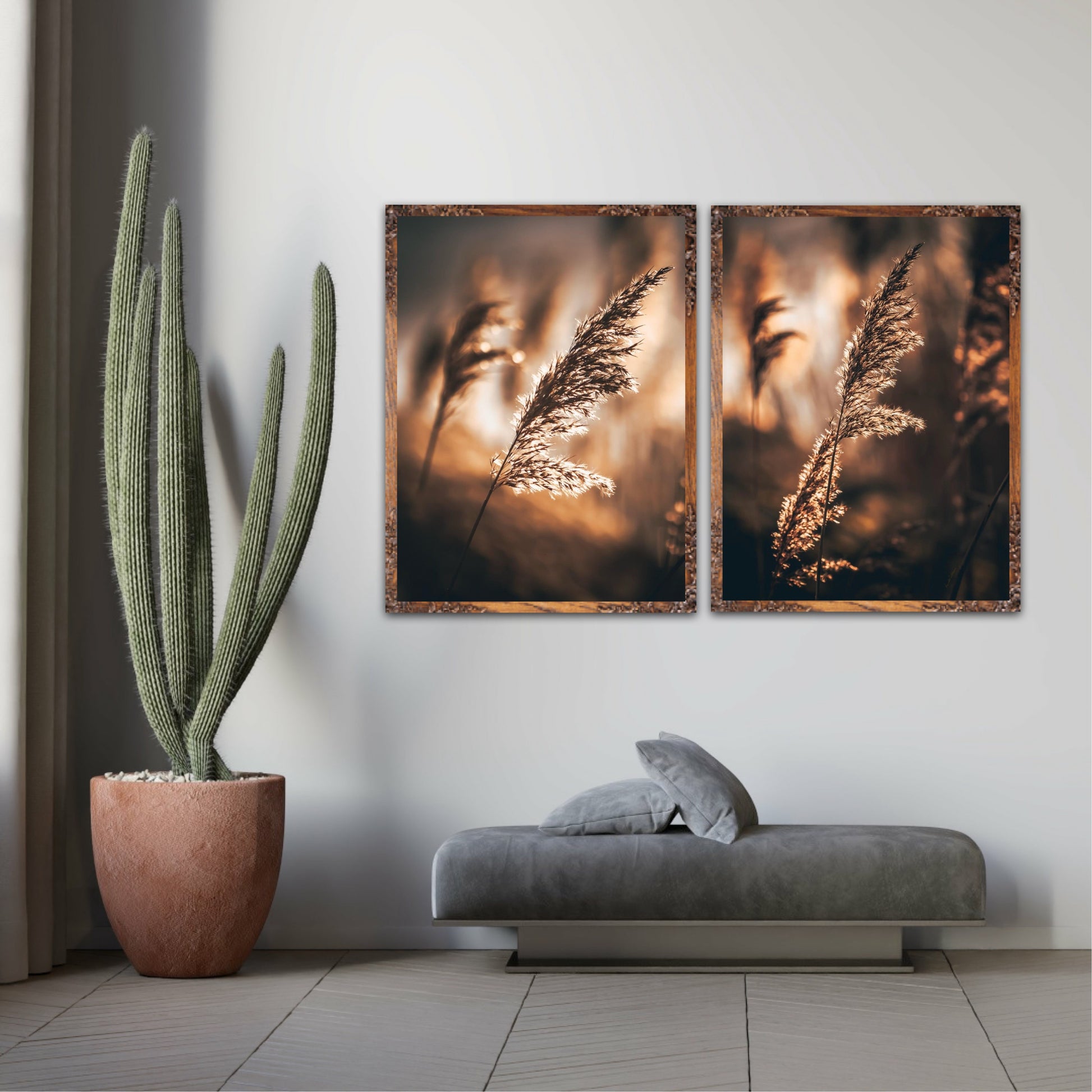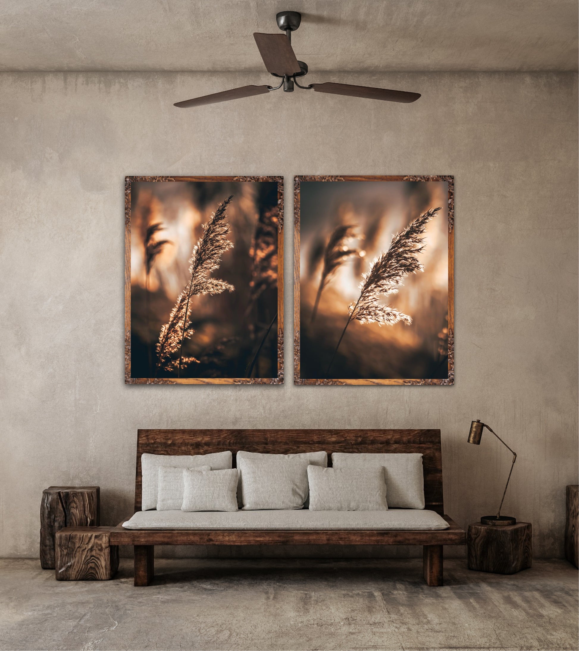 Beautiful photographic wall art of a straw at the waterfront during sunset. Magical, wonderful colours and light will bring great atmosphere to your home.