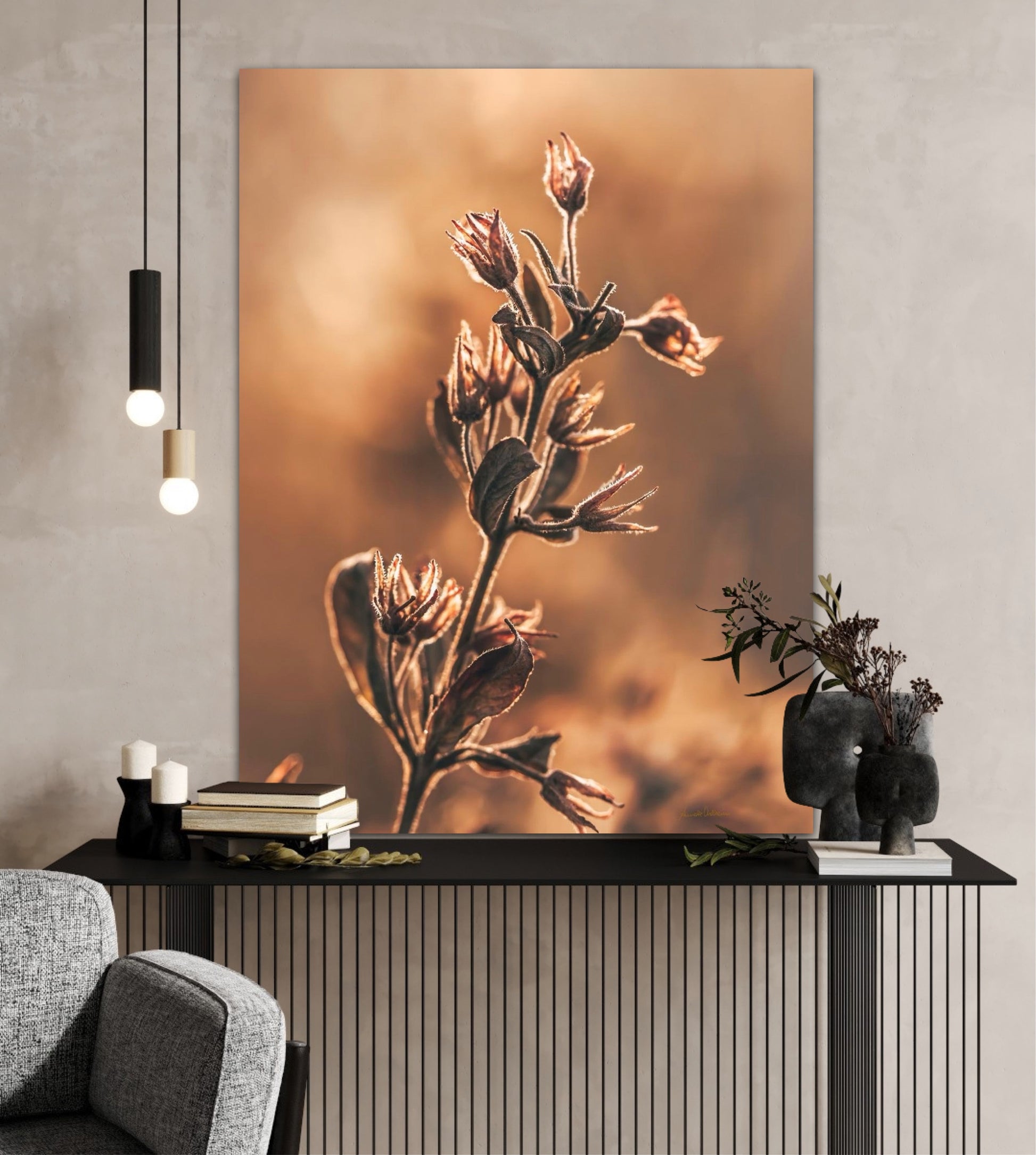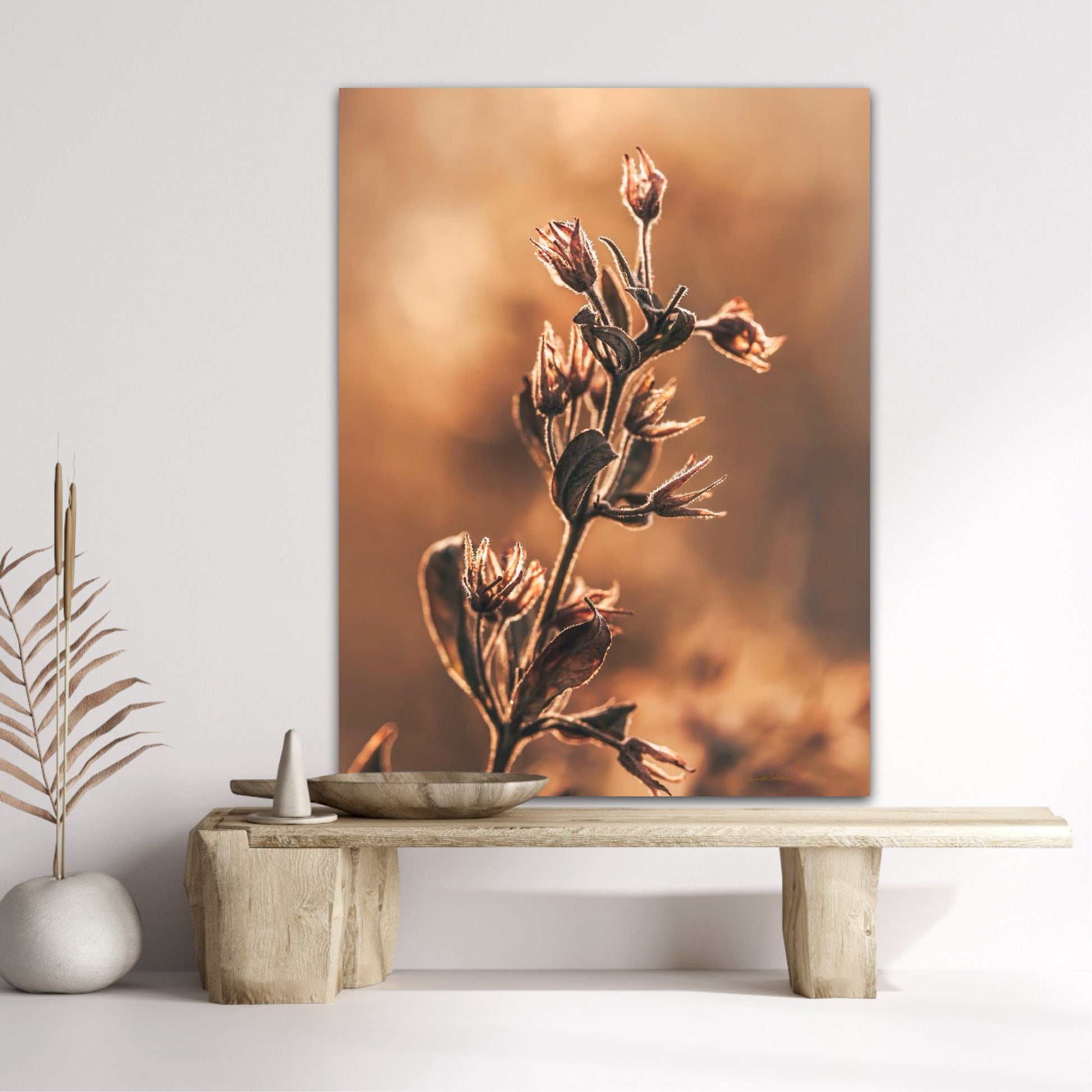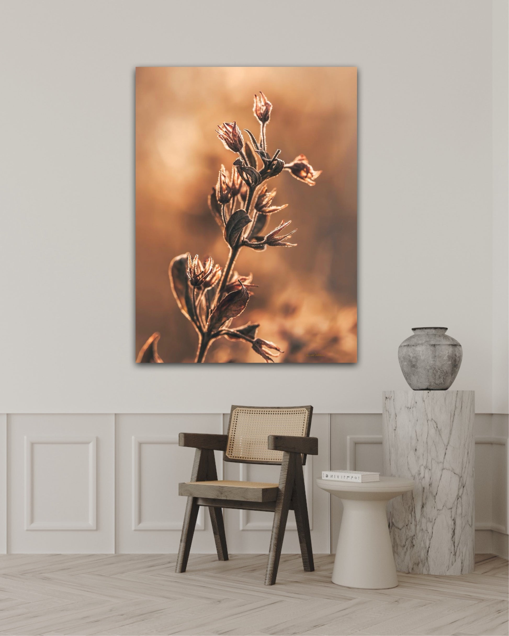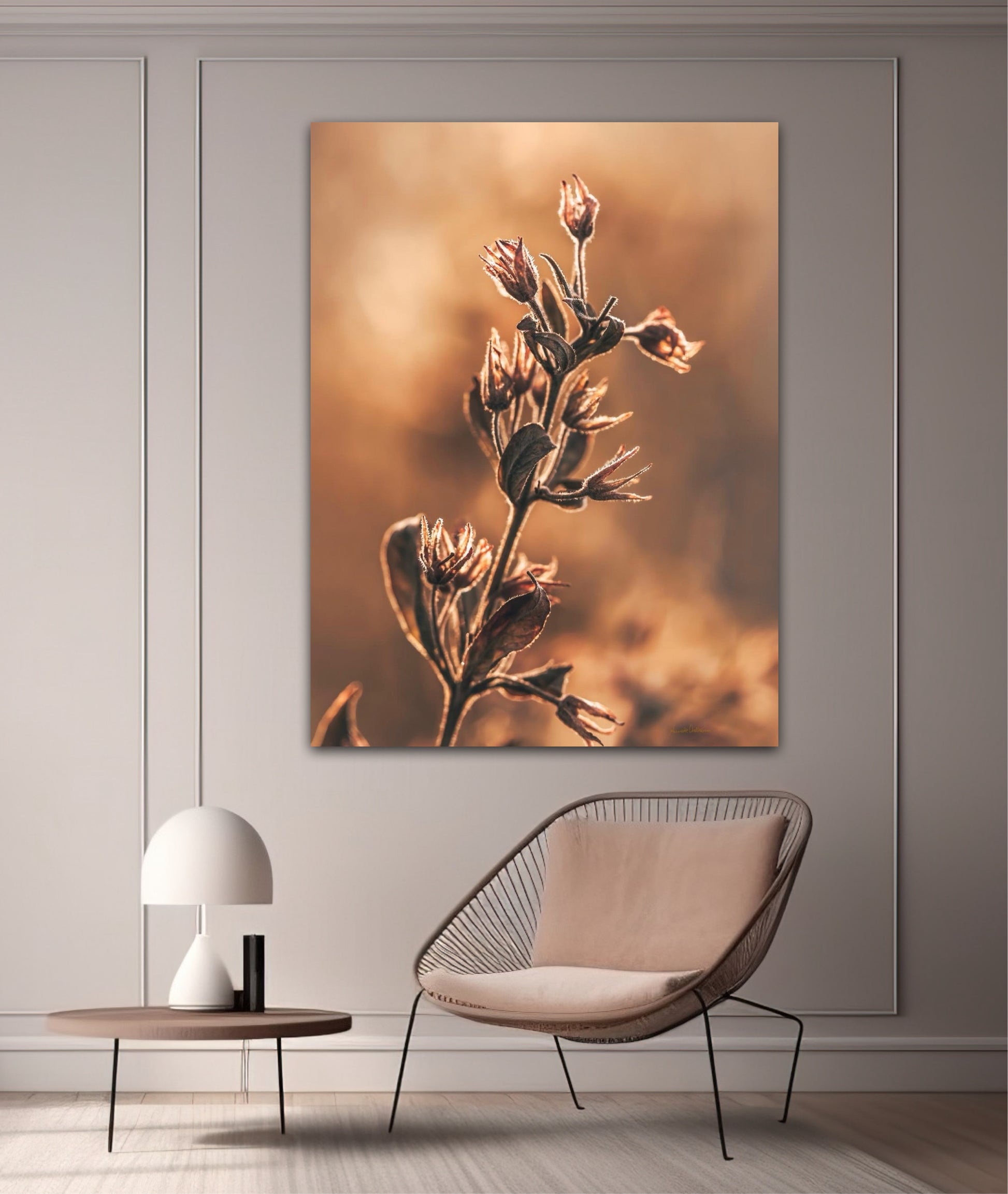 Beautiful photographic wall art of a flower weed in light golden tones, with beautiful details and lovely light. This picture will feel like the sun is shining in your home every day.