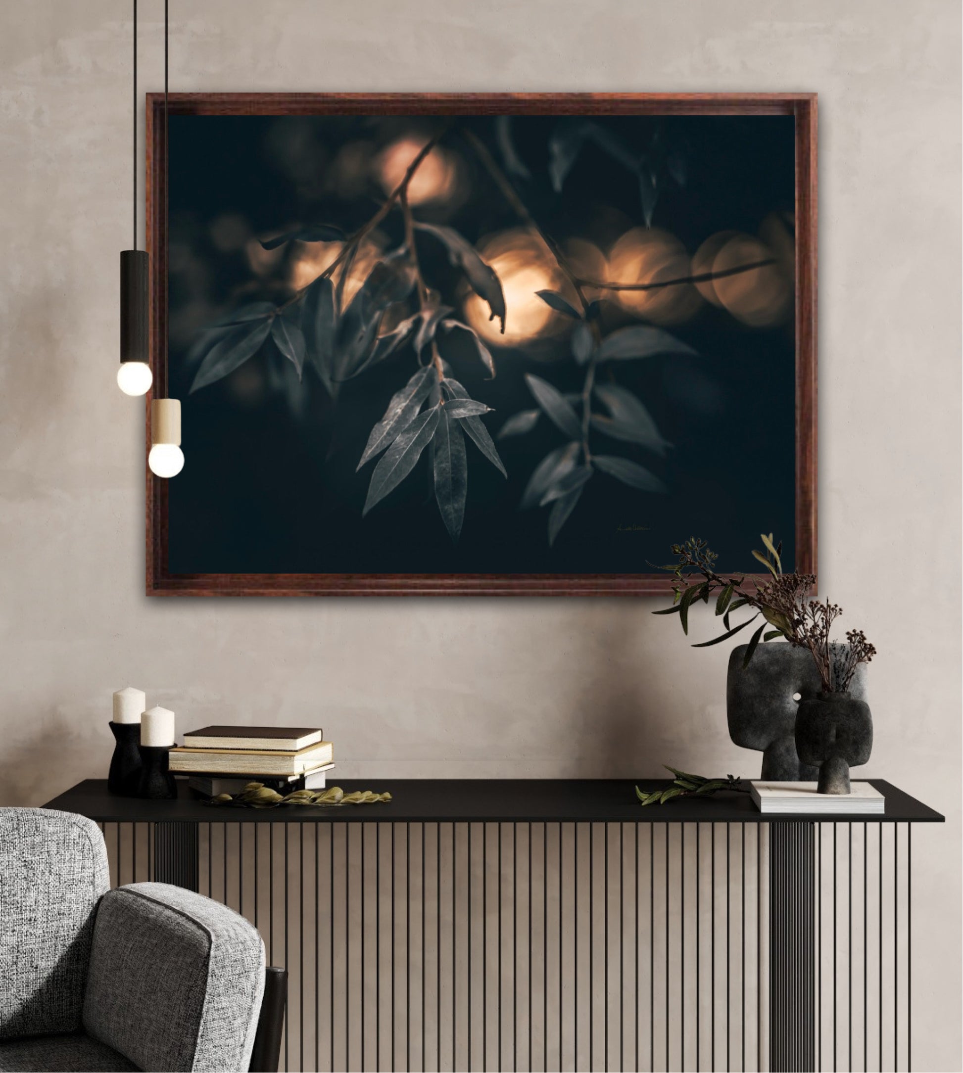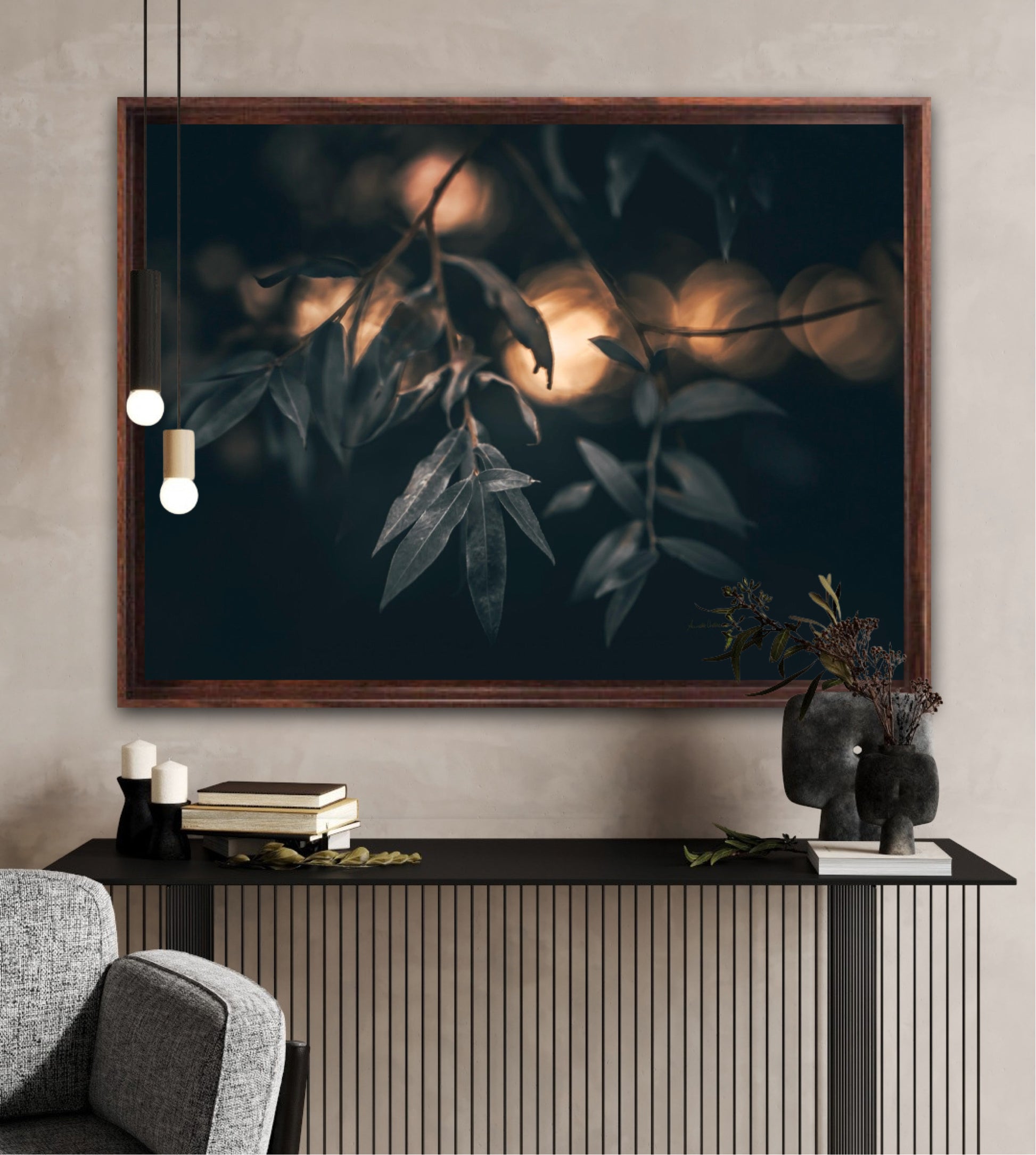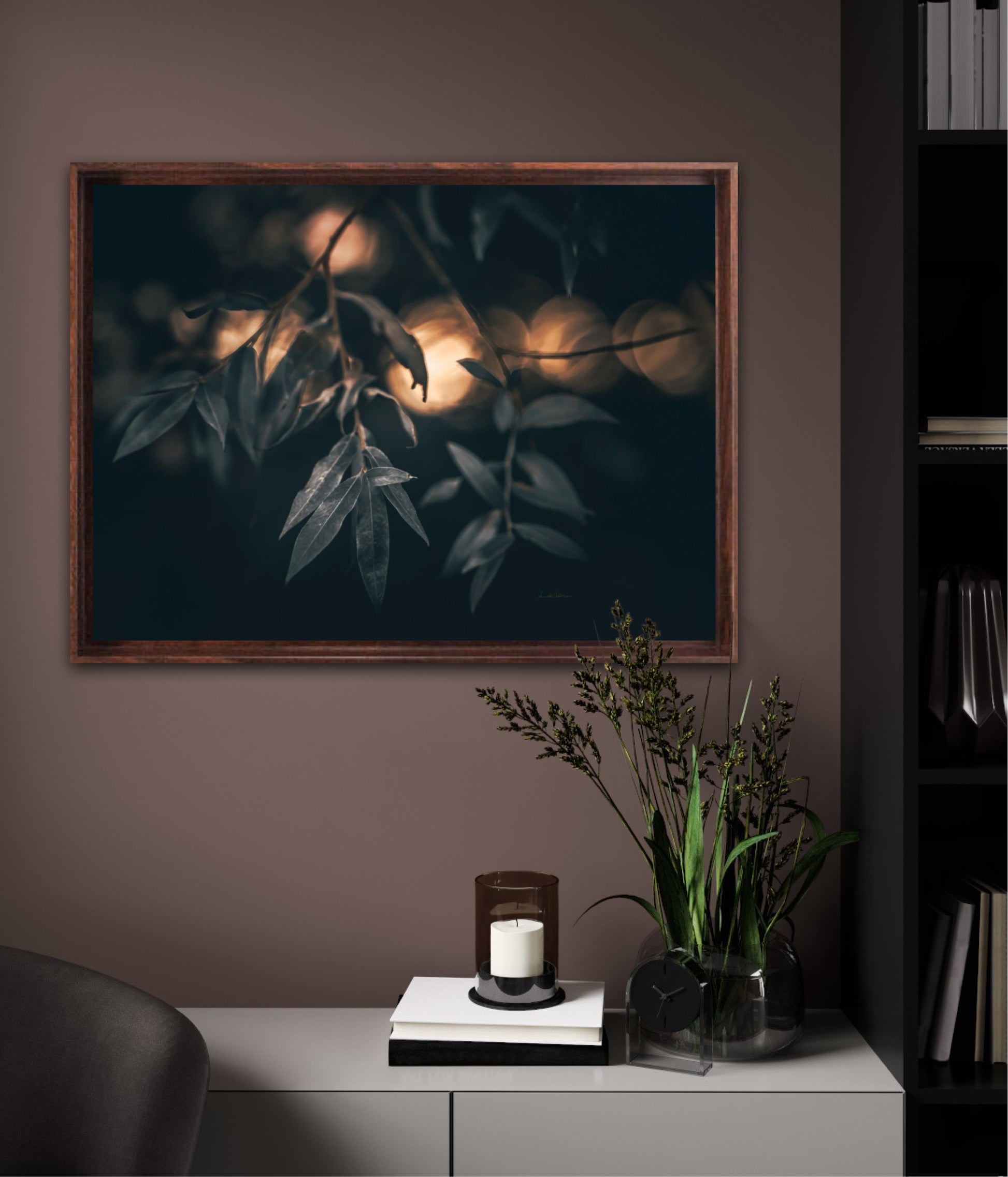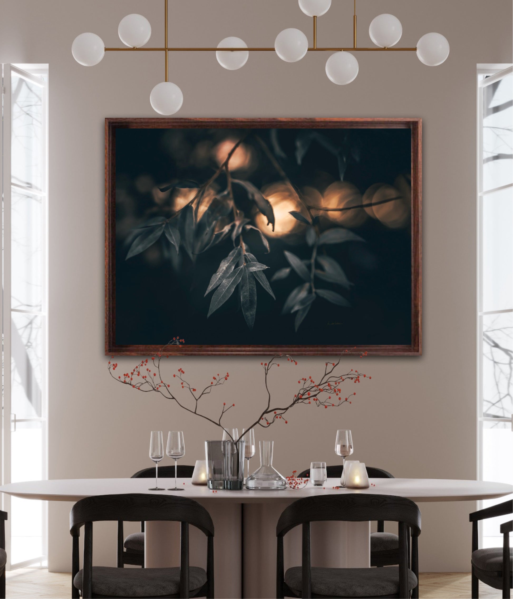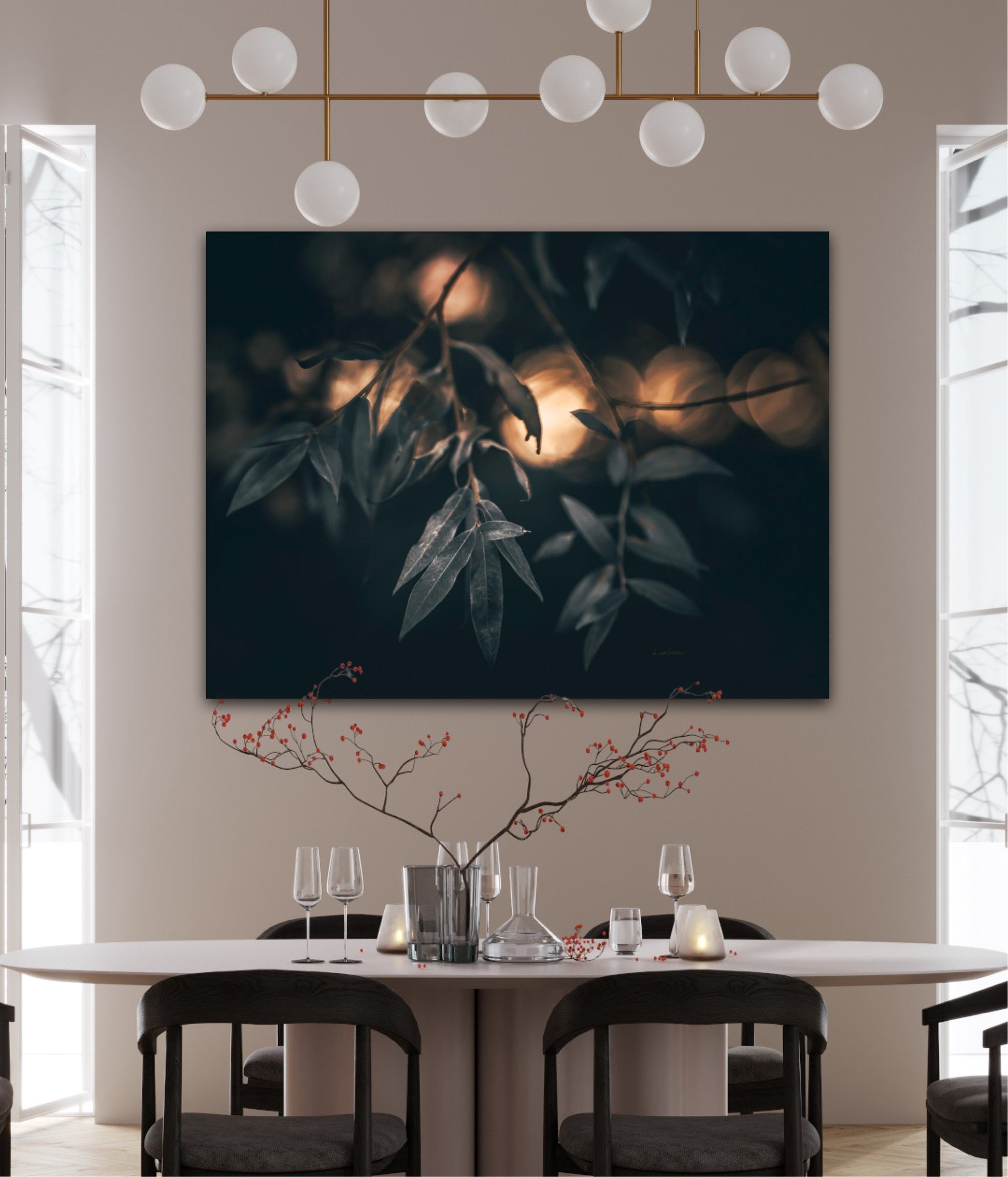 Beautiful photographic wall art of a Salix alba 'Sericea' leaf. This wall art is quite dramatic and gives your home that special vibe.