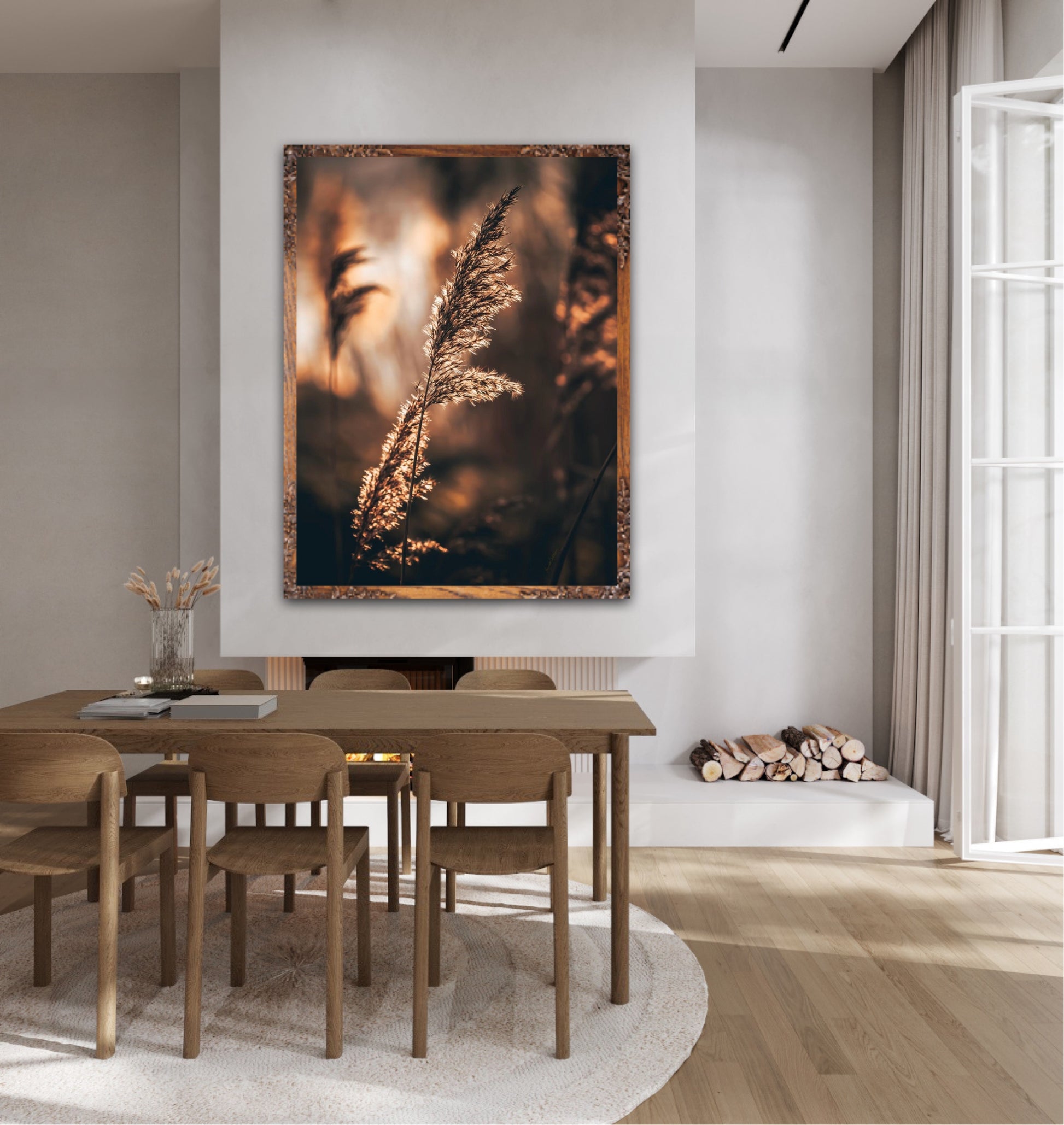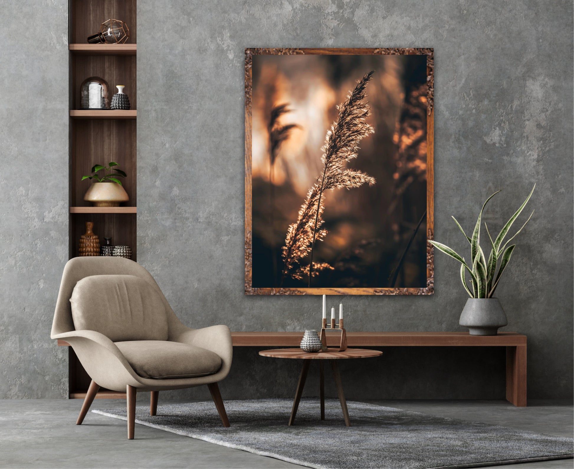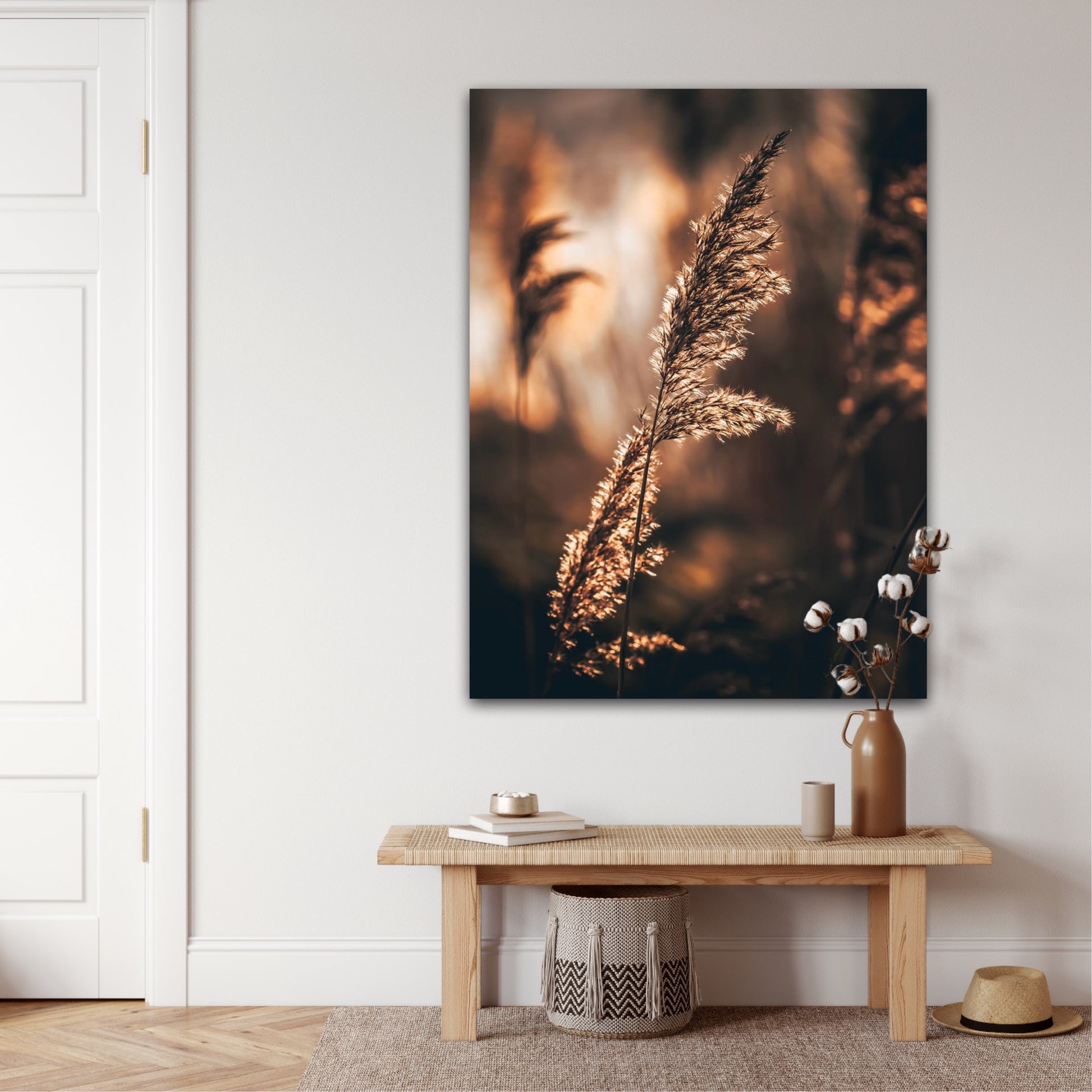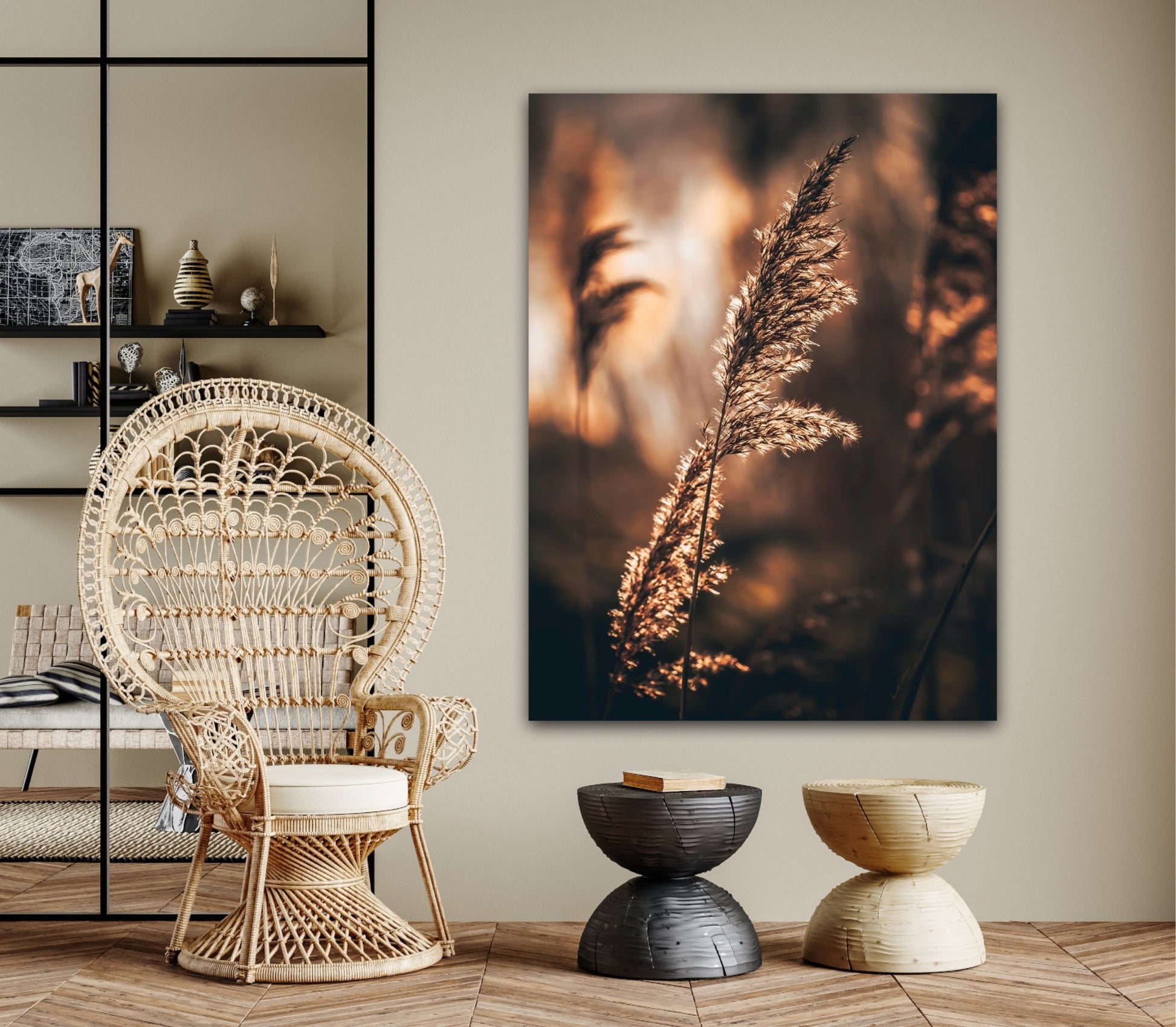 Beautiful photographic wall art of a straw at the waterfront during sunset. Magical, wonderful colours and light will bring great atmosphere to your home.