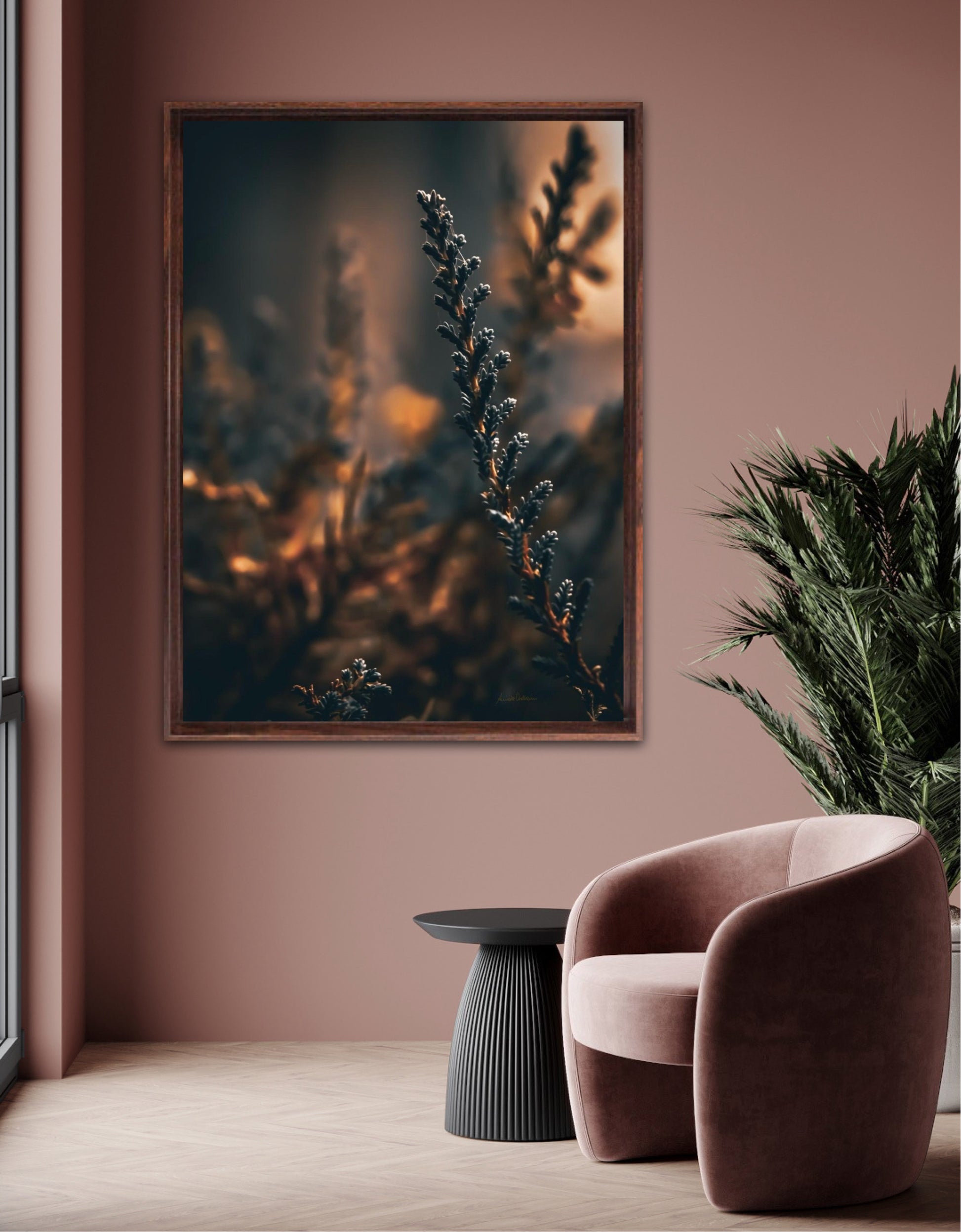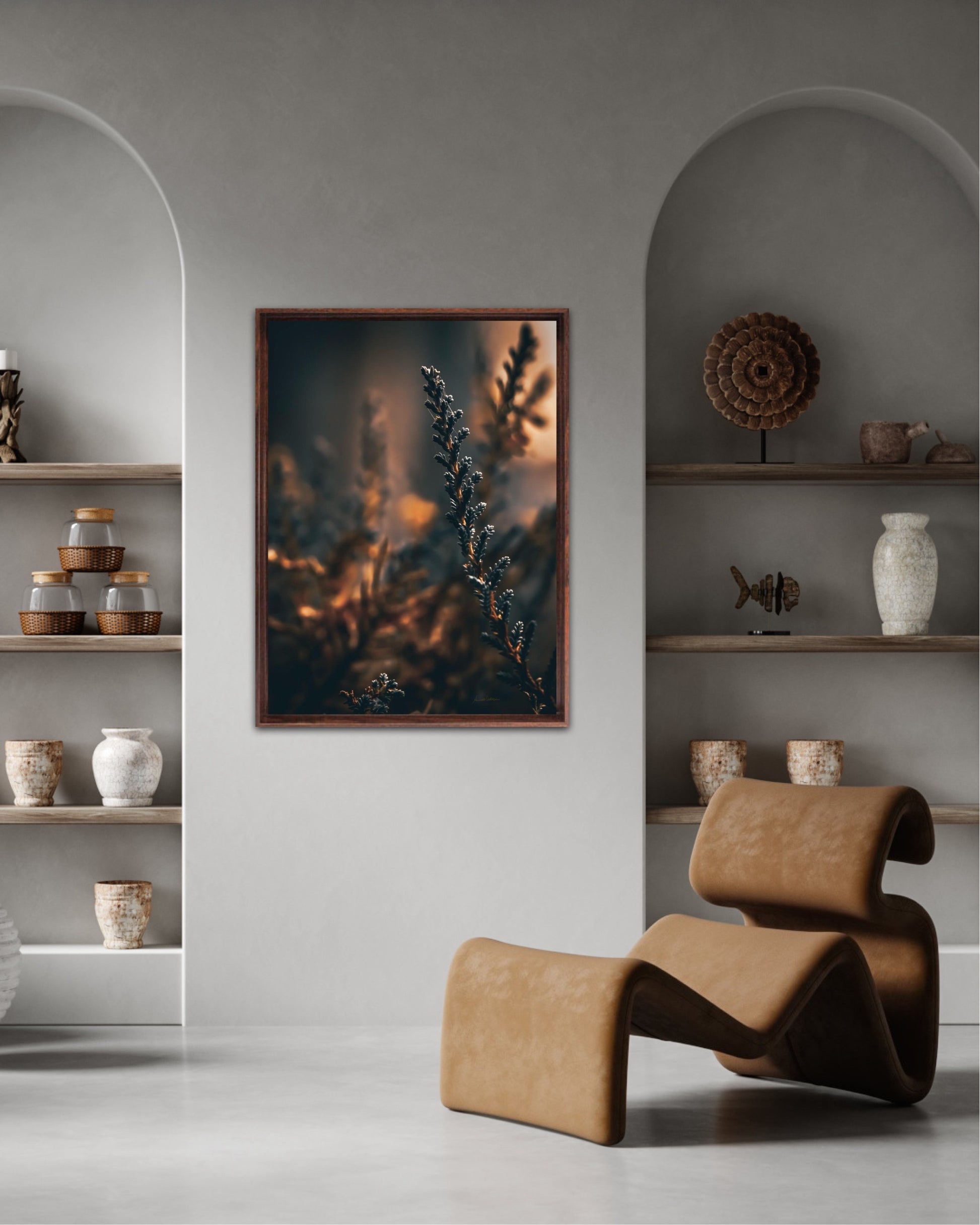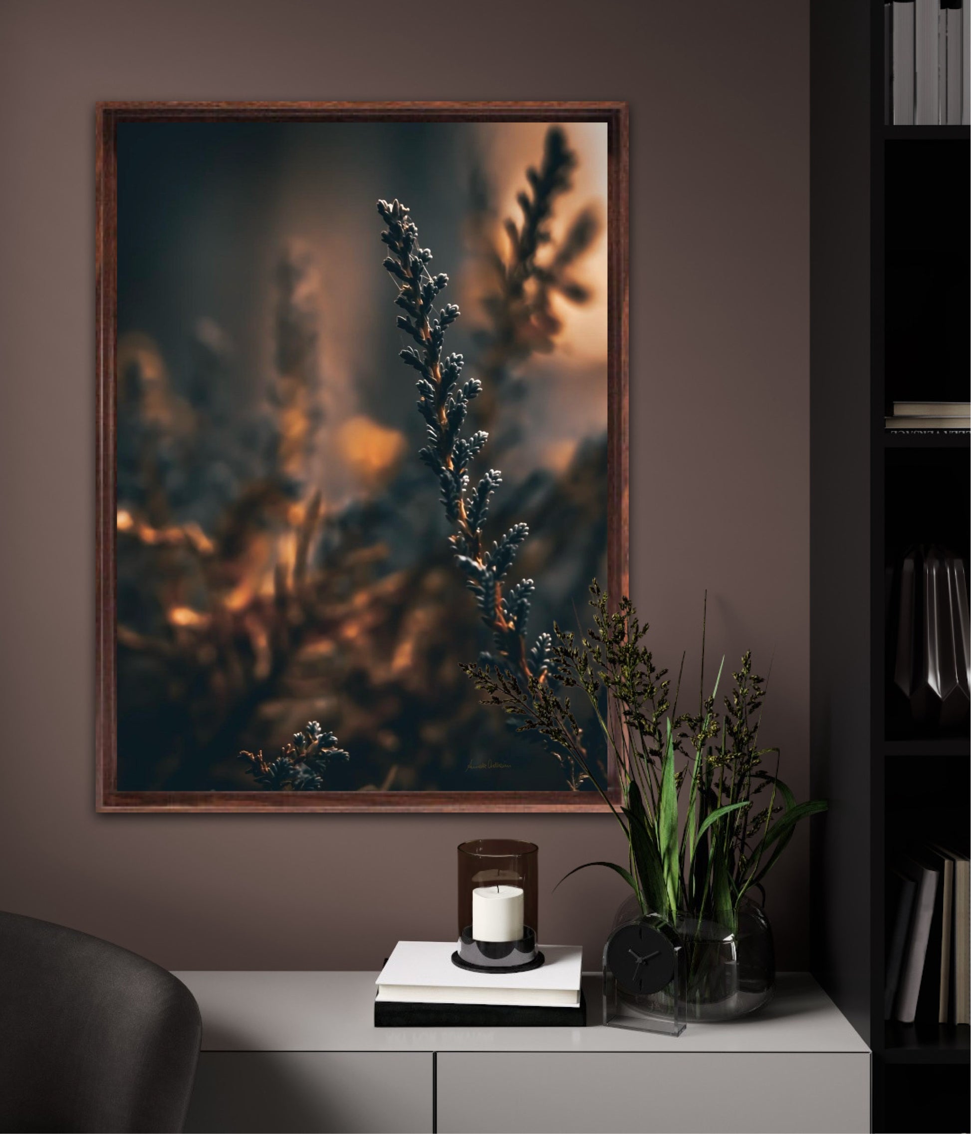 Beautiful photographic wall art of a flower weed in light golden tones, with beautiful details and lovely light. This artwork will make you feel warm cosy every time you look at it.