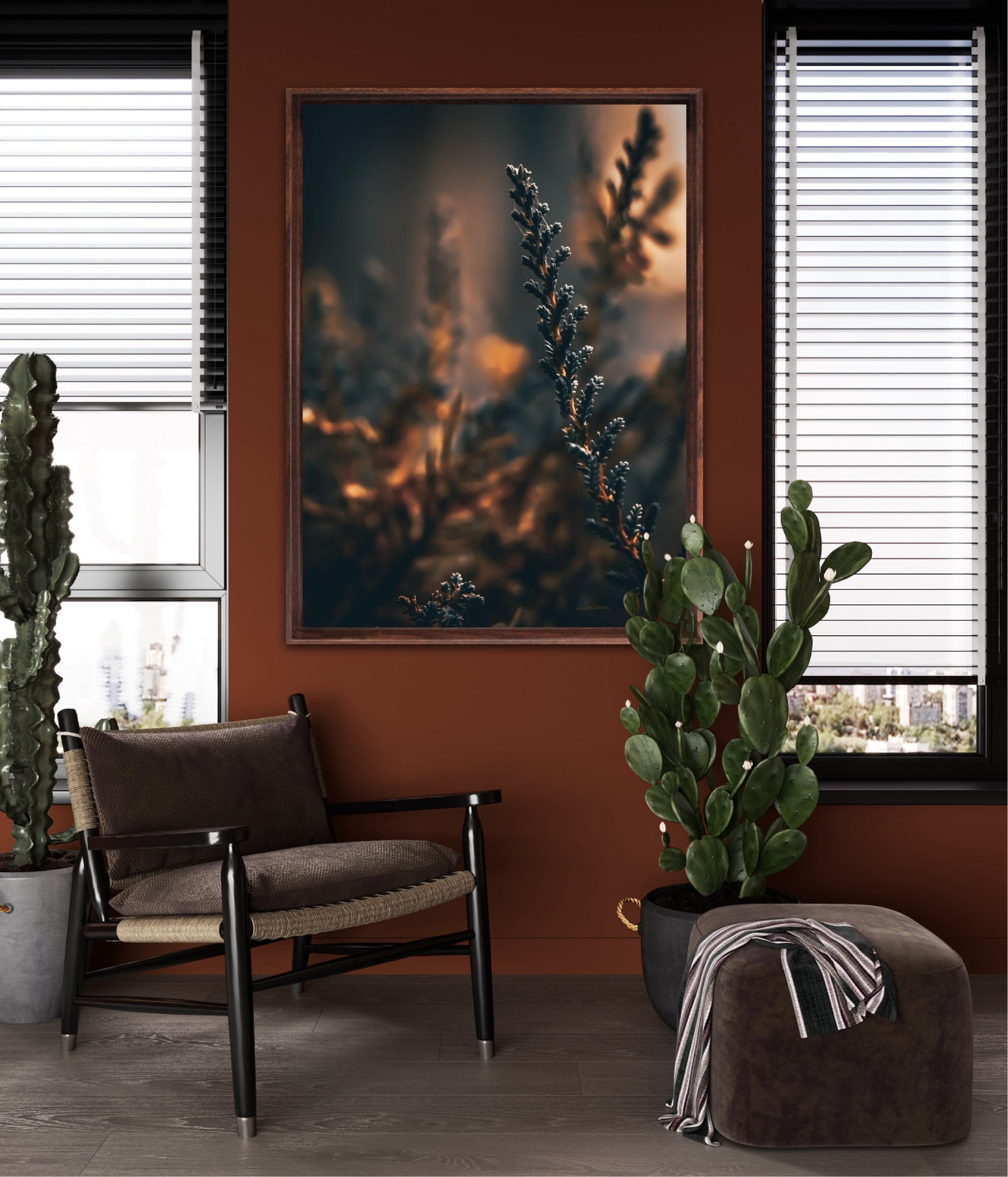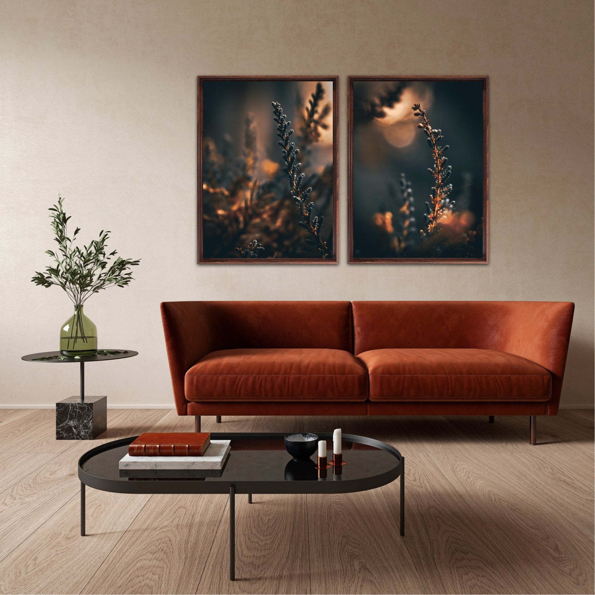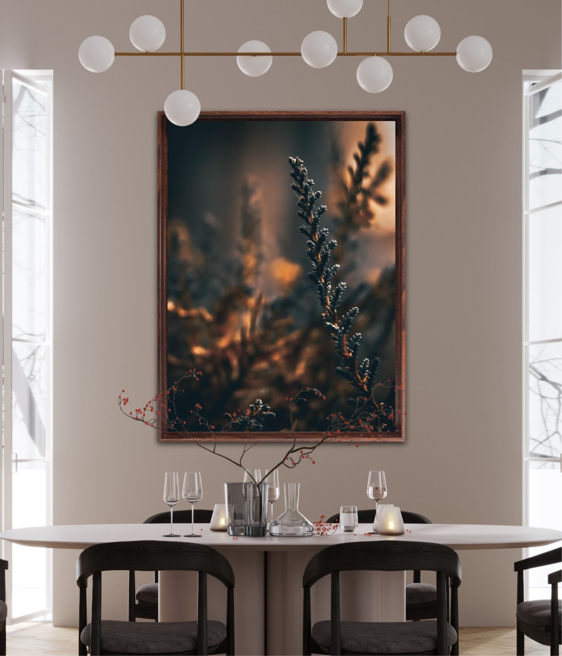 Beautiful photographic wall art of a flower weed in light golden tones, with beautiful details and lovely light. This artwork will make you feel warm cosy every time you look at it.